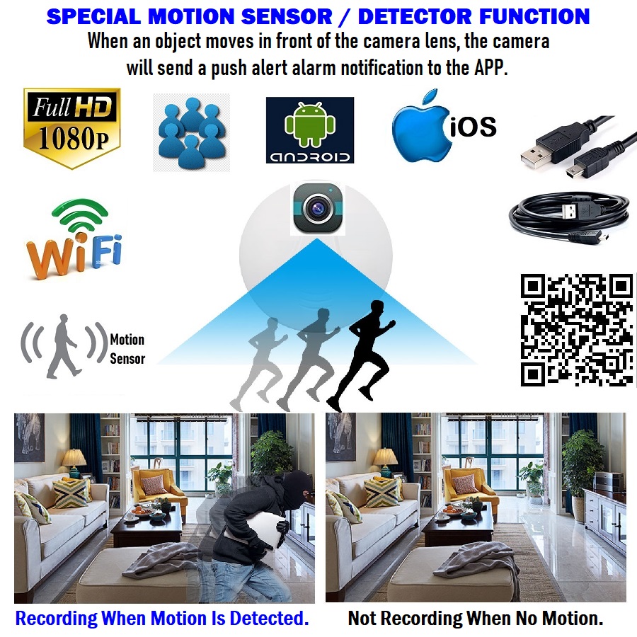 WiFi SPY CAMERA / P2P IP: Camera Supports WiFi Connection On Android, iOS and Windows. Supports Real-Time Remote Video View, Video Recording, Shooting Photos and Audio/Sound anytime anywhere.