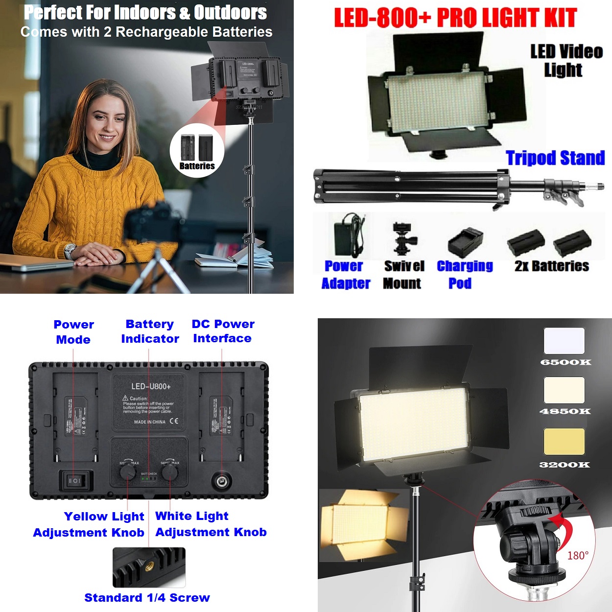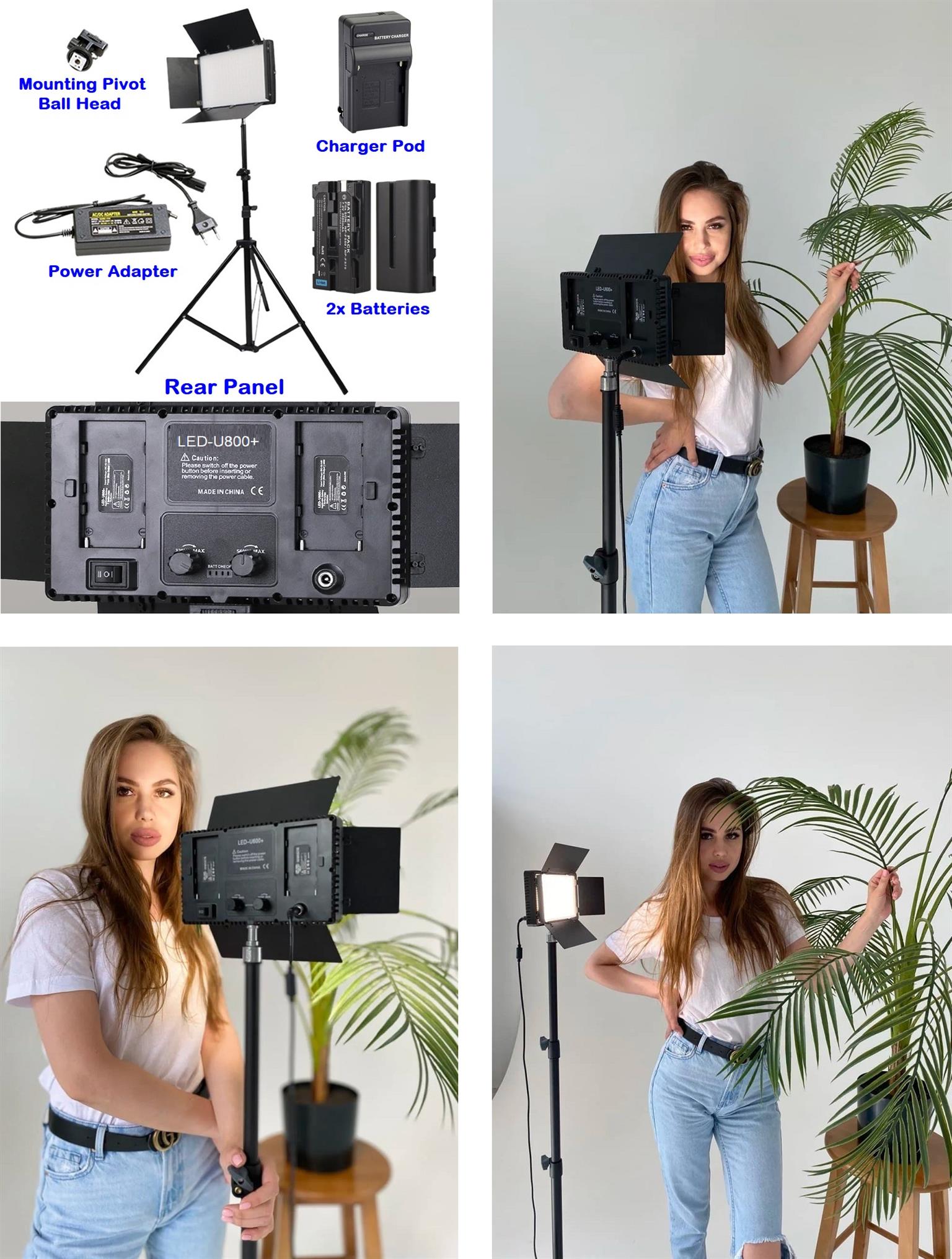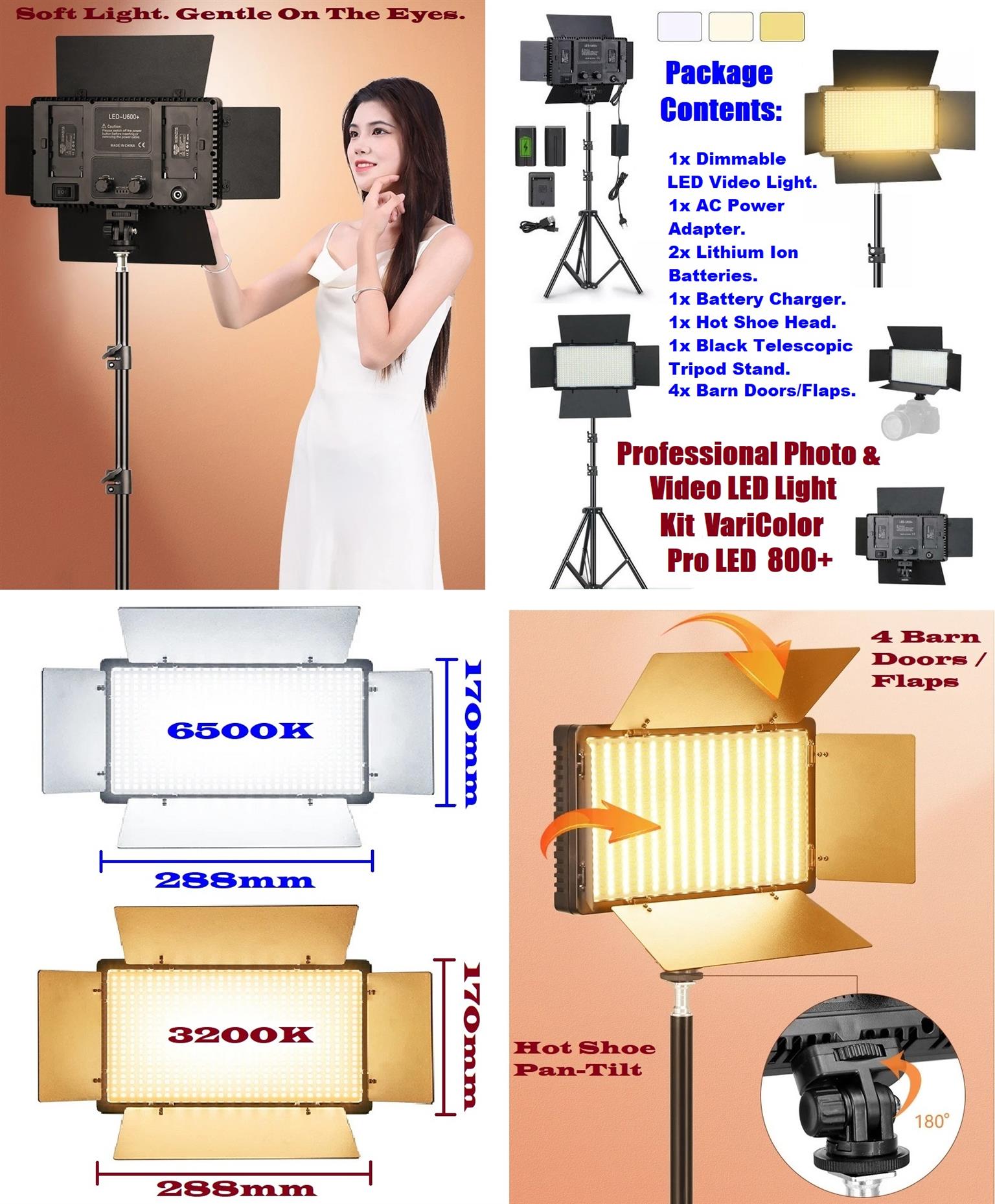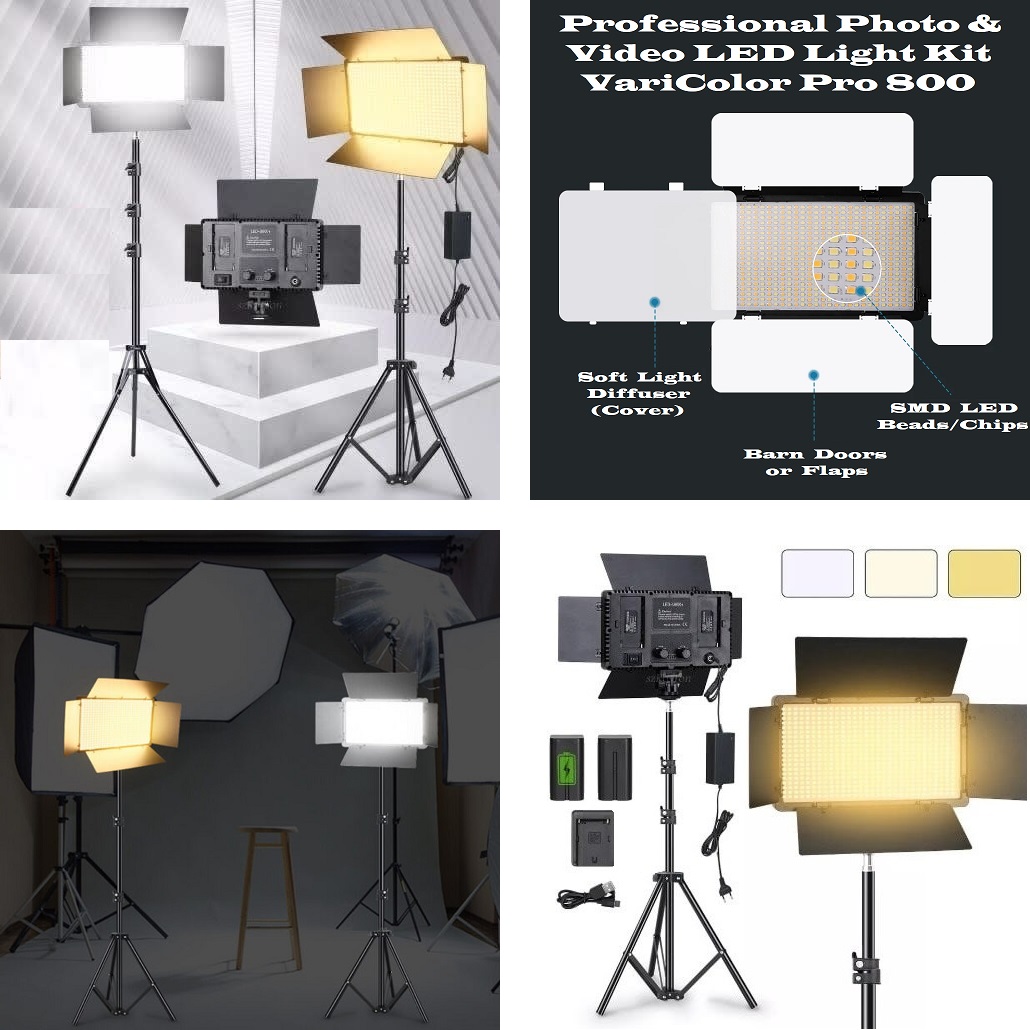 Professional Videography and Photography LED VariColor Pro LED-800+ Light Studio Kit.