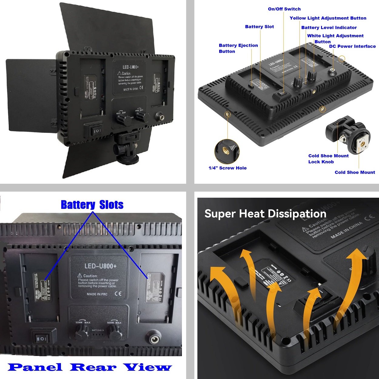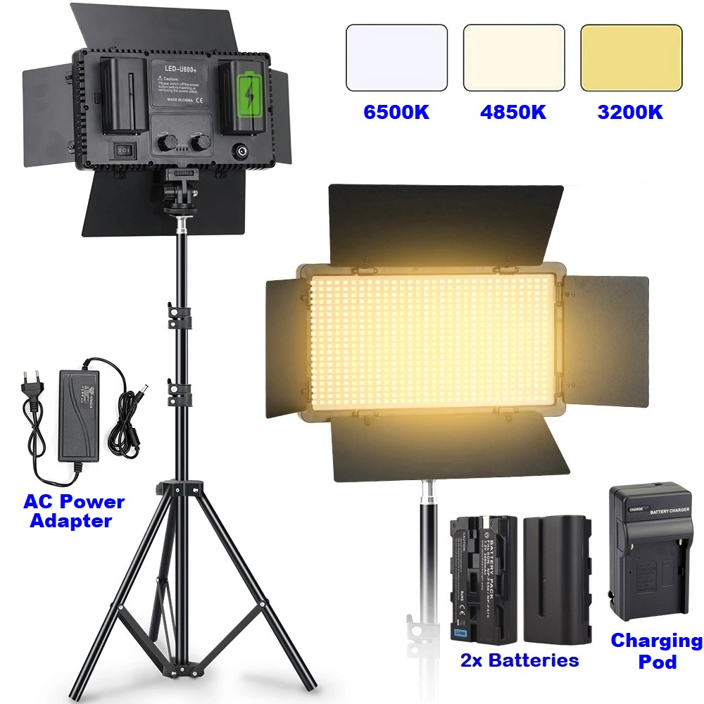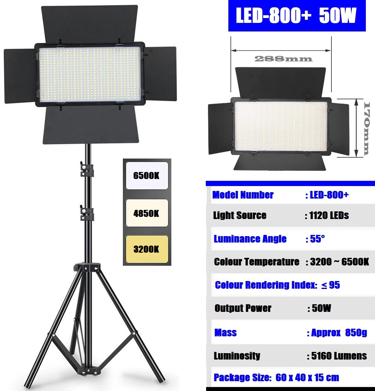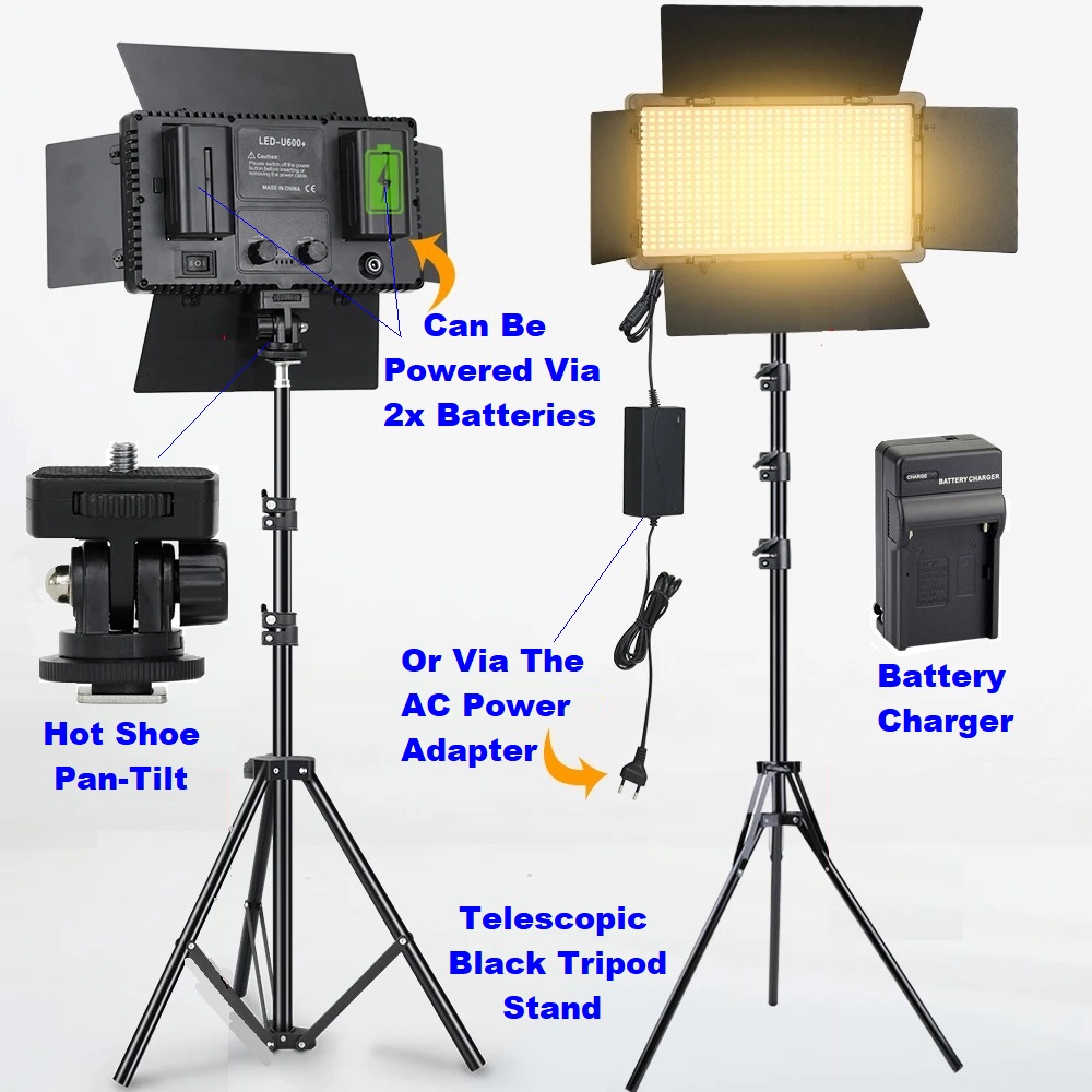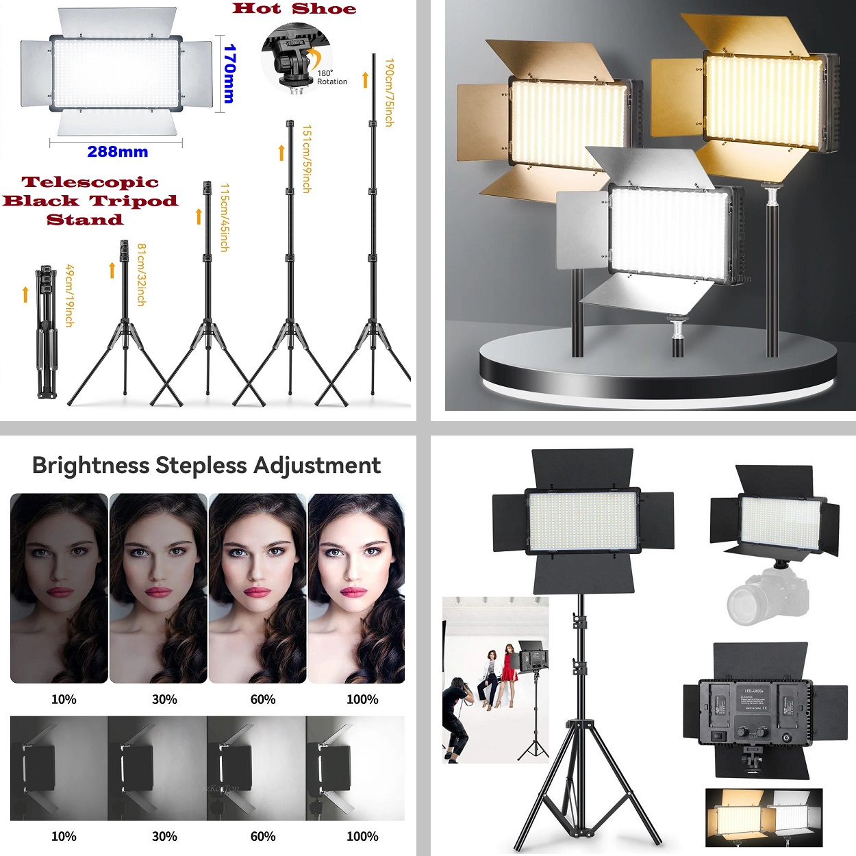 Professional Videography and Photography LED VariColor Pro LED-800+ Light Studio Kit.