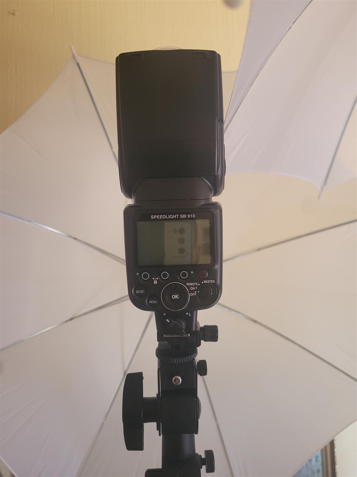 Nikon Sb-910 speedlight flash with umbrella and tripod stand R3000
