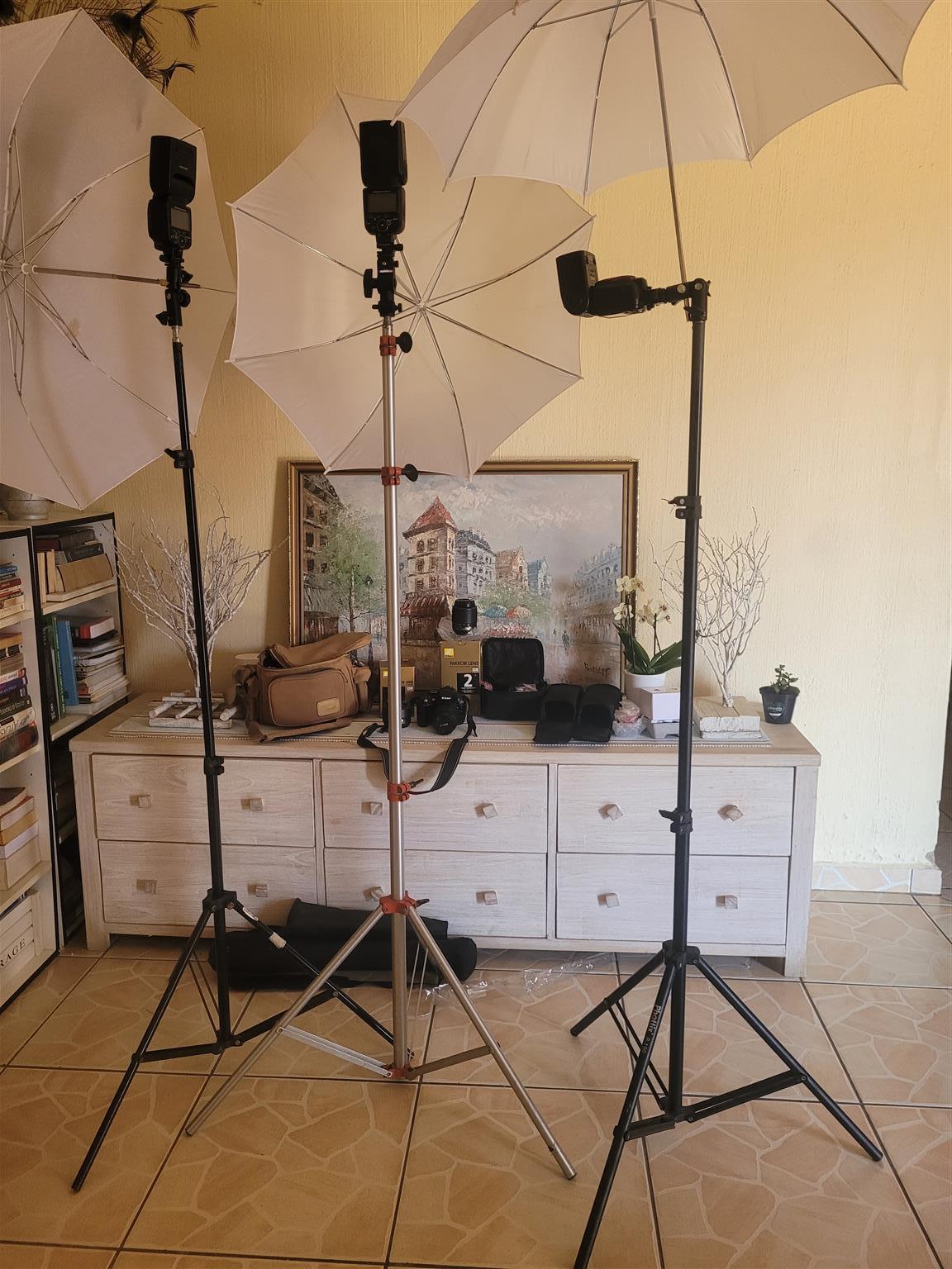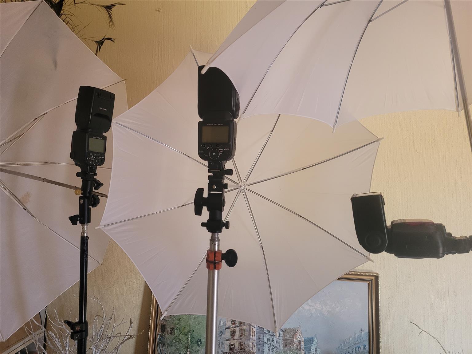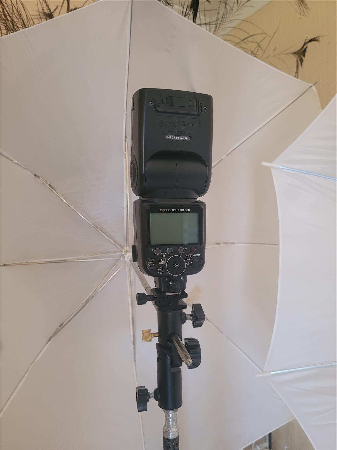 2x Nikon Sb-900 speedlight flash with umbrella and tripod stand R2500 each