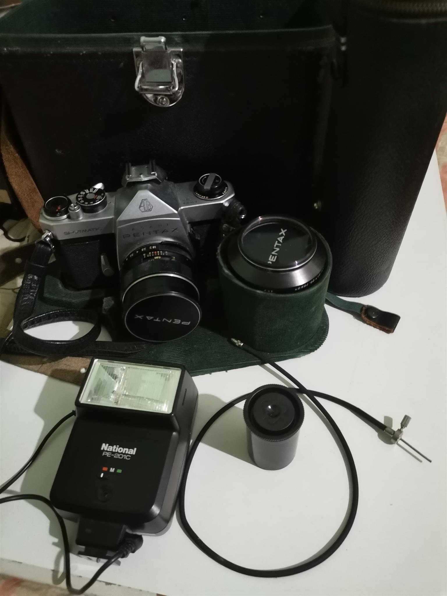 Very good condition. Camera, flash, 2x lences, one in it's holder, wires