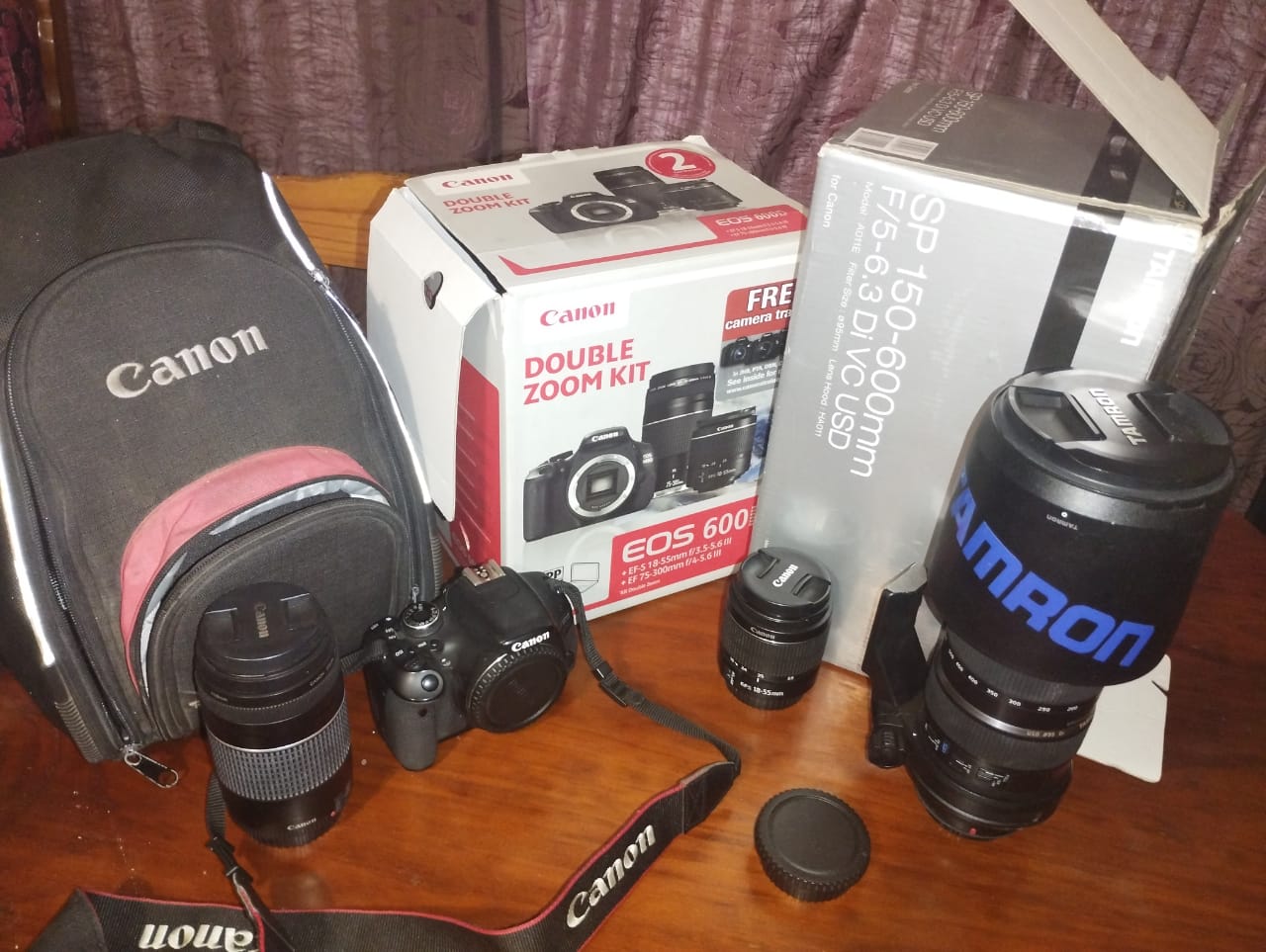 Canon 600d camera kit with a tamron 150 x 600 zoom lens R10,000.00. More details: