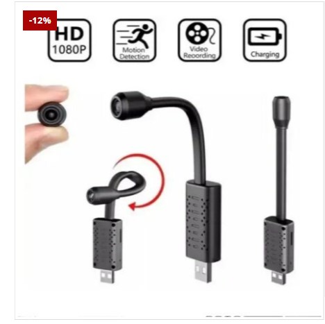 Mini Spy Camera USB with motion detection and wifi for smartphones, with night vision, wireless connection, 1080p video recording, audio recorder, wide angle lens and free mobile app remote control.