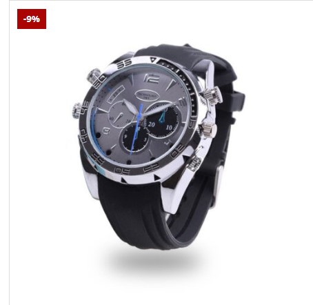 High Quality 1080P Spy Camera Watch with Rubber Strap, 32GB memory, night vision and motion detection. Used in private investigations, undercover operations and mystery shopping.