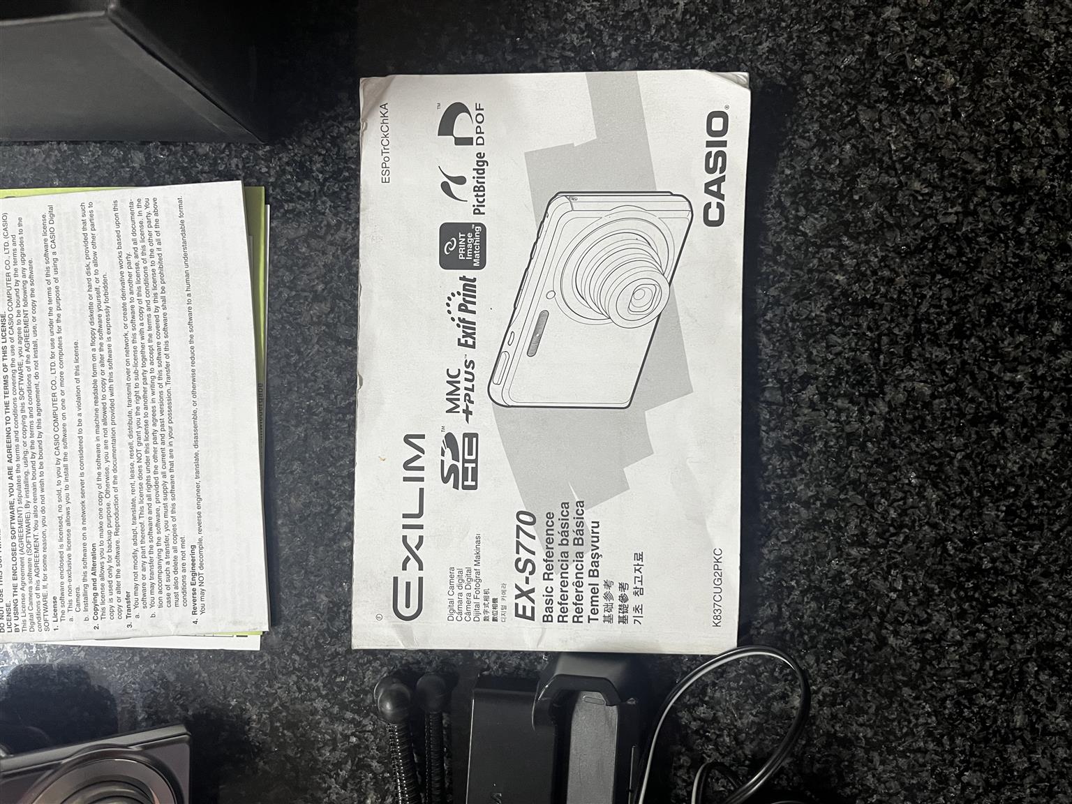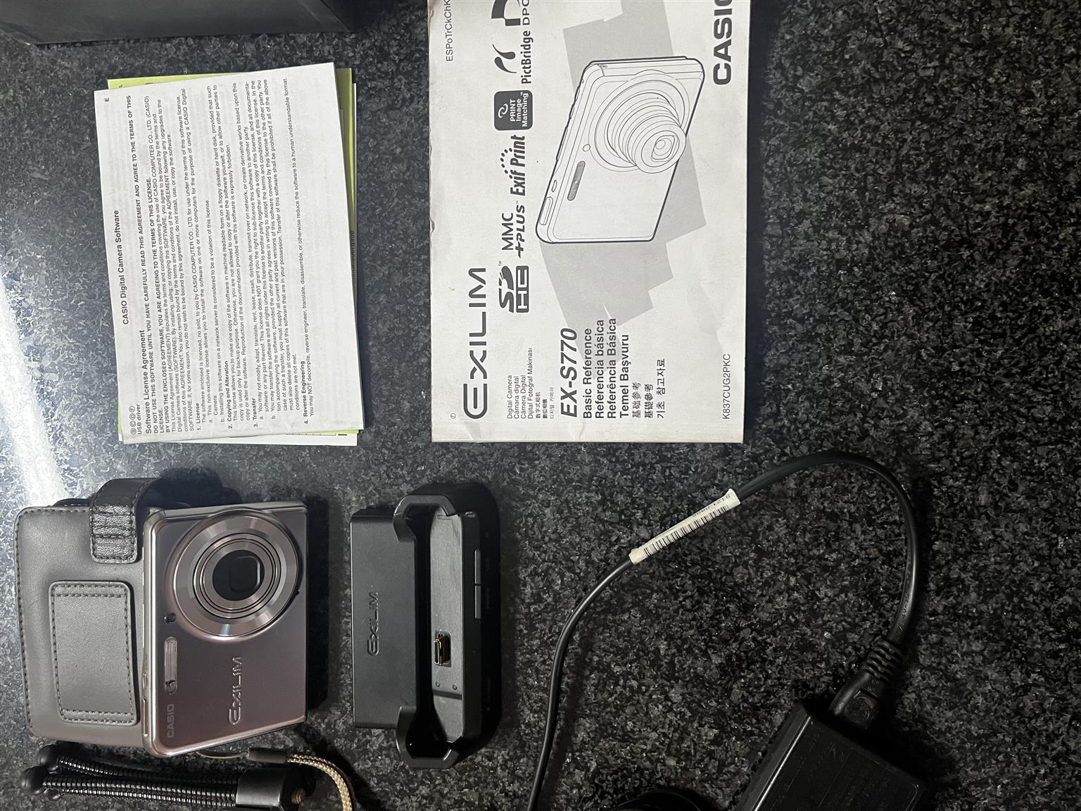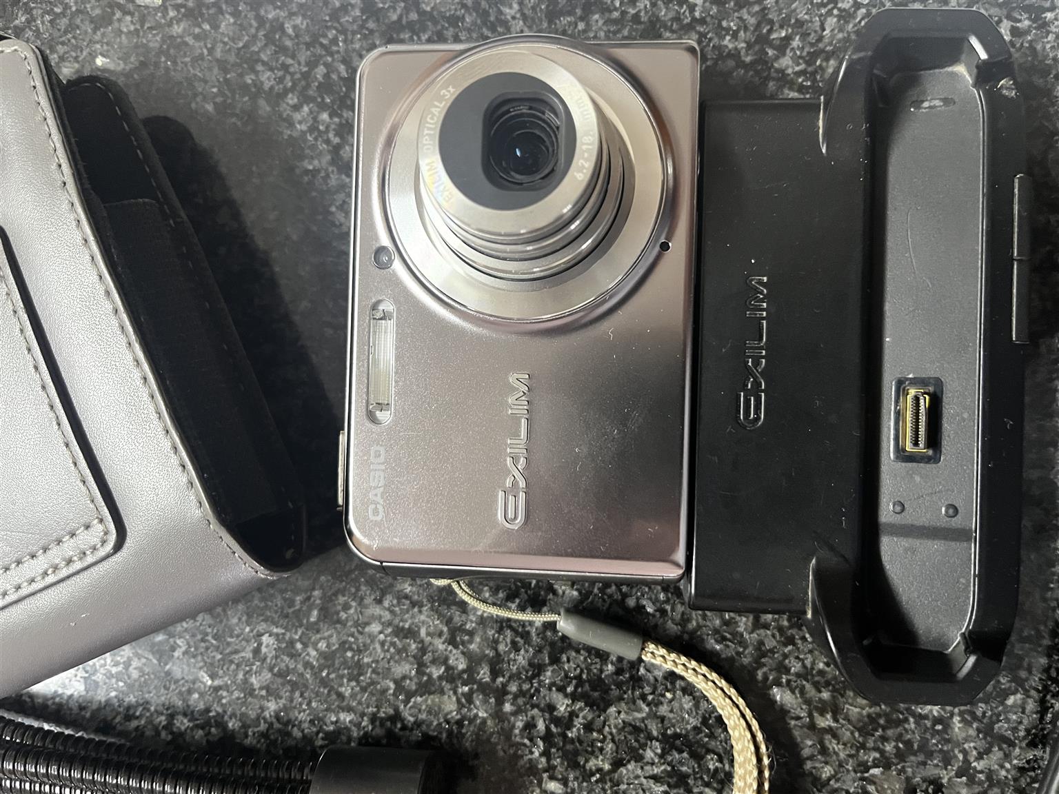 Casio Elixim Video Camera Point and Shoot Compete with USB Cable. AC Adaptor. AV Cable . USB Cradle. Pocket Pouch. Tri pod . Excellent Condition