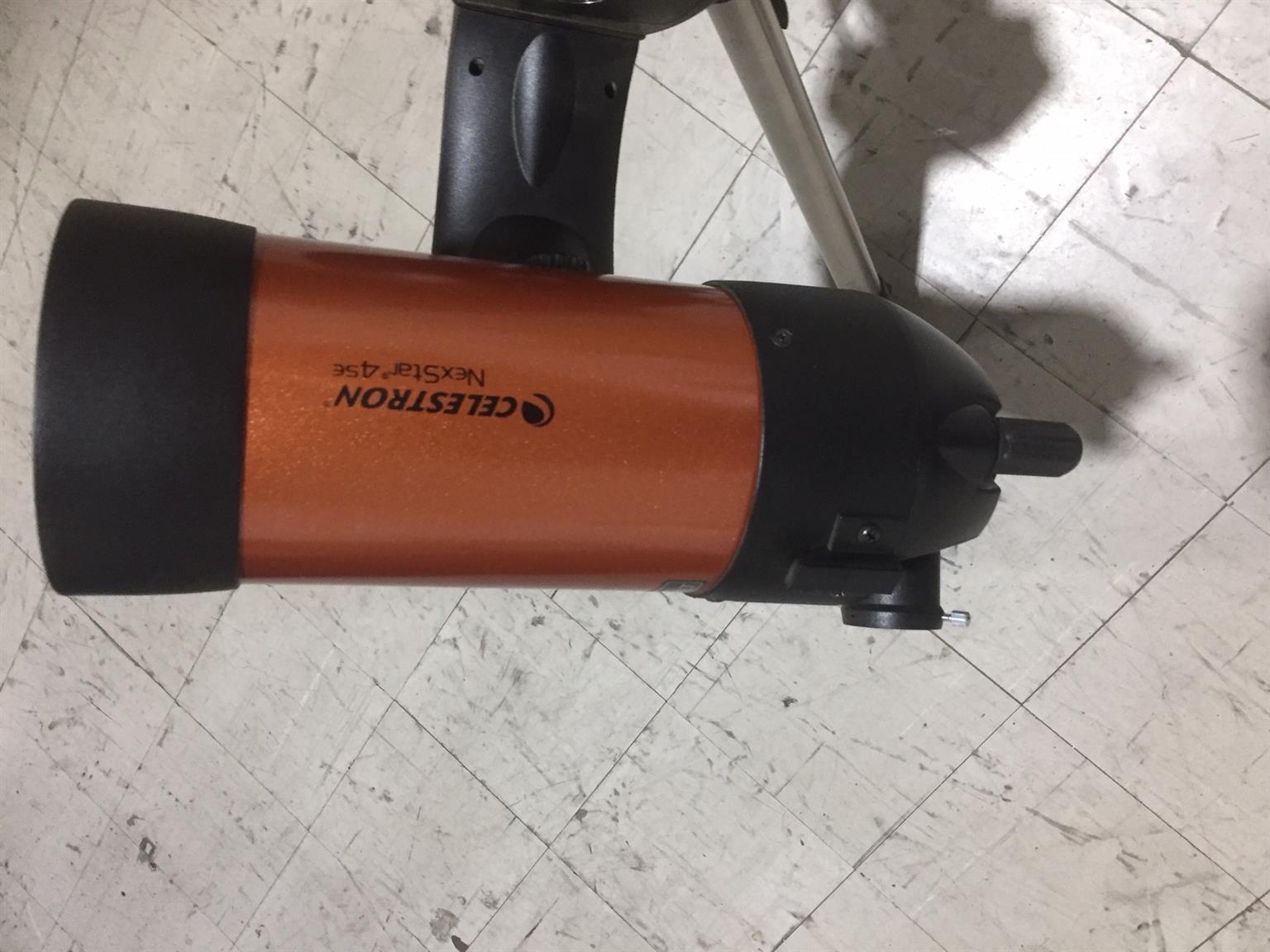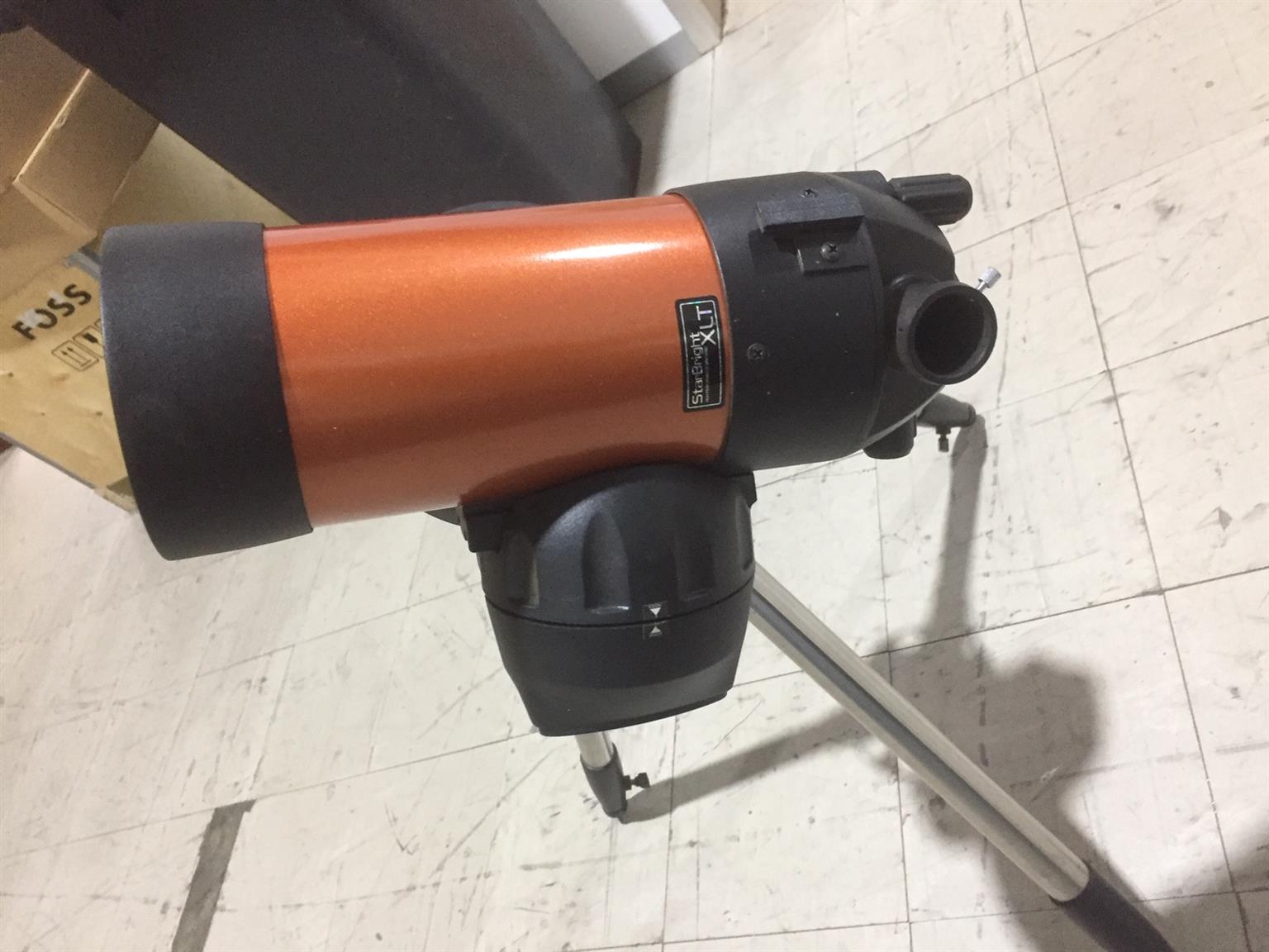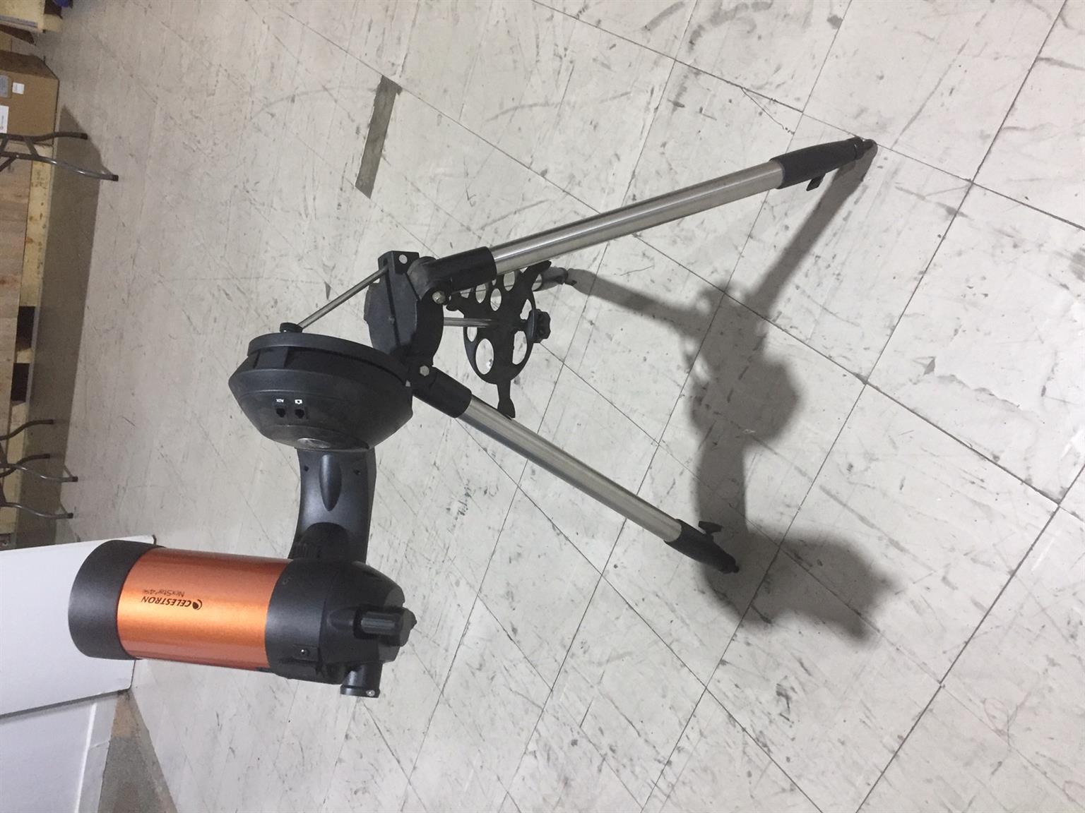 Has extendable stand/feet with tilt functionality. Electronic key pad for setting specific star/planet locations and swiveling of telescope. Programmable memory with automated rotation. comes with a set of different scopes strengths and lenses.