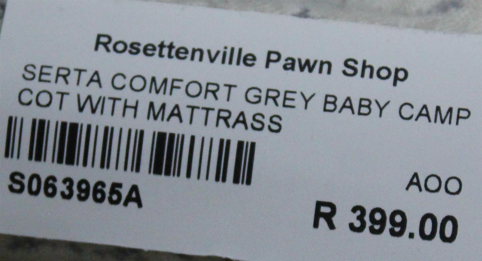 SERTA COMFORT GREY BABY CAMP COT WITH MATTRESS