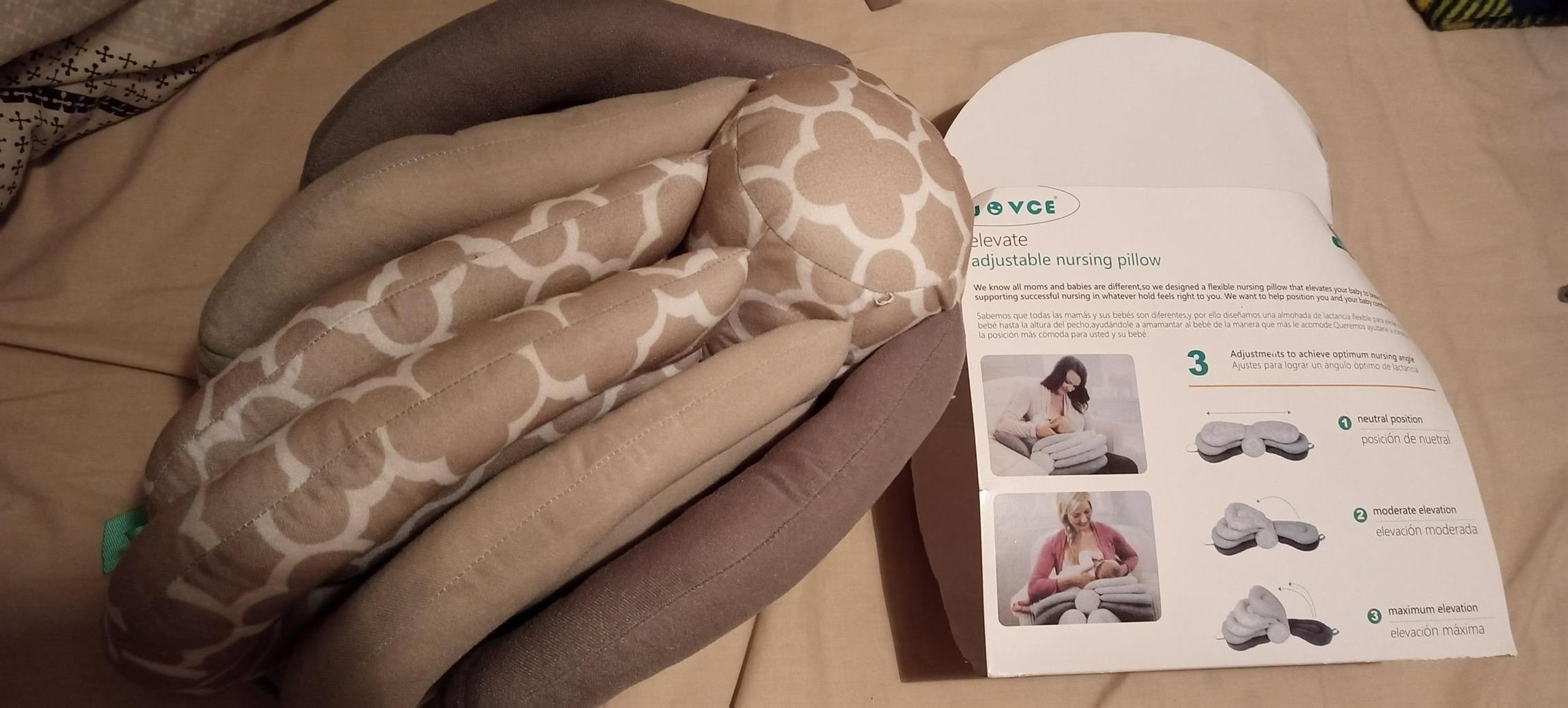 Breat feading pillow with different settings as baby grow. I received 2 pillows as presents. Have no use for another one. Brand new still in plastics