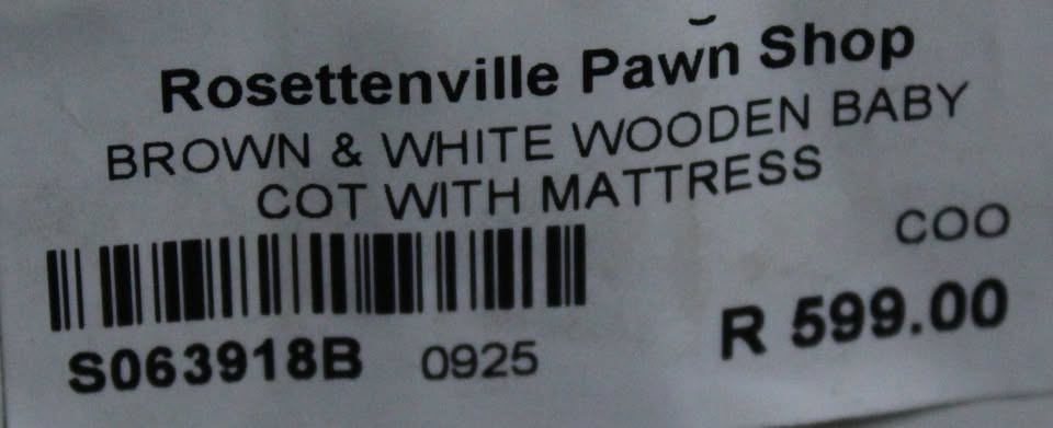 BROWN & WHITE WOODEN BABY COT WITH MATTRESS GOOD CONDITION S063928B Available at: Rosettenville Pawn Shop 99 Main street Rosettenville Johannesburg South 011 434 4697view more 071 958 5948view more www.rville-pawnshop.co.za #rosettenvillepawnshop