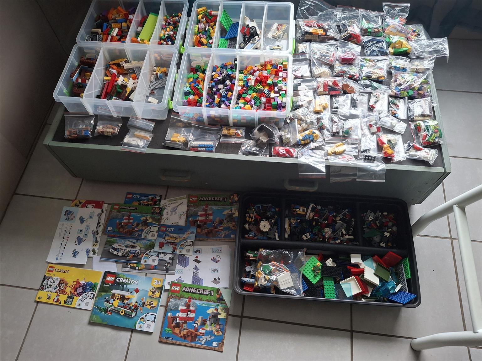 Customized wooden drawer (paid R3000) on wheels made/used for Lego storage & building. The top is painted with Chalkboard paint making the building process more exciting. Thousands of Lego blocks with base boards are included all basically brand new. Lego's worth +/- R8000. Please note the plastic containers are not included.