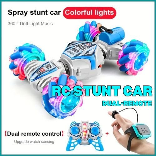 Double Remote Control Gesture Sensing Deformation Remote Control Stunt Car Four Wheel Drive, Off Road Climbing Blue and Black Item information: • [Two control modes our remote-control stunt vehicles are upgraded to two control methods: gravity sensor observation control and remote control. You just need to wear gesture watches and send gestures, and the remote-control car will play a measuring role. Alternatively, you can easily control the remote control through the efficiency of the 2.4GHz transmitter. The intensity of the transmitter is sensitive and sensitive and can even control long distances. (You can't control the car toys in both directions at the same time.) • [Rear spray bilateral driving car unique double-layer driving design, super strong counterattack structure, can flip and drive both sides. Even if you encounter obstacles, you can continue driving and climbing. It can not only rotate 360°, but also walk on the side. Adding water also has a tailing effect, so you can enjoy more fun. • [Most interesting features In addition to the basic function, forward/backward/left/right function. Special functions include one click deformation, side drift, 360° rotation, 2 side guide, one click twist, one click demonstration, adding water tail spray effect, The four wheel drive stunt car stunt toys. This sensor remote control car is very cool for kids 6-12. This is an ideal stunt car and also meets. • [Anti-interference functional performance the wireless remote control vehicle control system is 2.4GHz. This means it can provide stable signal and have anti-interference functions. When two or more vehicles are transported together, it will not be out of reach. • [Perfect gift for children and adults the ideal gift for children is light and the tail spray music and gestures remotely control the stunt cars. The perfect birthday gift remote control car is suitable for boys 8 year +. The sensation of gesture upgrade twists the car and wishes to make every child happy. Should have a stunt car enthusiast as a remote-control reptile Christmas / birthday gift. Features: • Hight explosive power. • Tail Spray. • Mecanum wheel- Drift Tires. • 360° Rotation. • Dazzle Sound Effect- Lights and music. • Watch Sensor- Gesture Sensing. • Drift Driving. • Anti-fall Material. • Four-wheel drive power. Demo mode: • Auto Demo Cool light and sound effects. With music and colourful lights. • Dynamic music creates a happy atmosphere. Play dynamic music immediately after opening. Dance with music. • Four-wheel drive power. • Powerful foot, stronger. • Equipped with powerful power motor. • Let you be unobstructed in all kinds of venues. Remote Features: • Dual remote-control mode. • Watch remote control. • Gravity sensing/gesture control. • Multi-function control. • Handle remote control. • 2.4Ghz remote control technology. • Remote control, multiple sets can play at the same time.