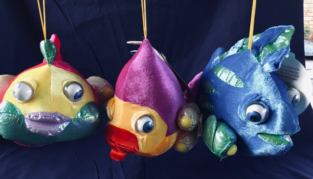 3 Soft brightly coloured fish toys with fun big eyes. All in excellent condition as they have never been used.