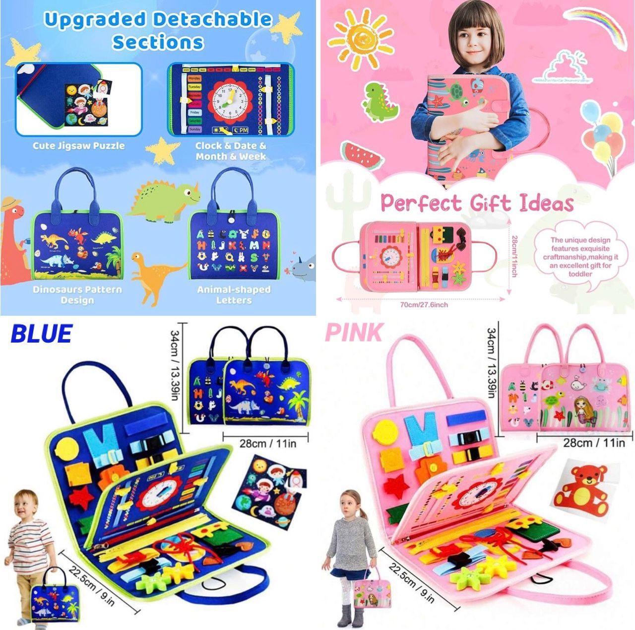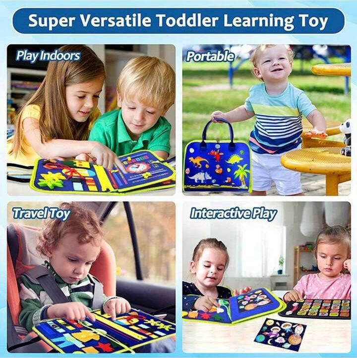 - Sensory Packed Board With All Basic Skills, Zippers, Laces, Buttons, Belt, Buckles, Shapes, Alphabets, Numbers, Colors, Directions, Clock Learning & Puzzles