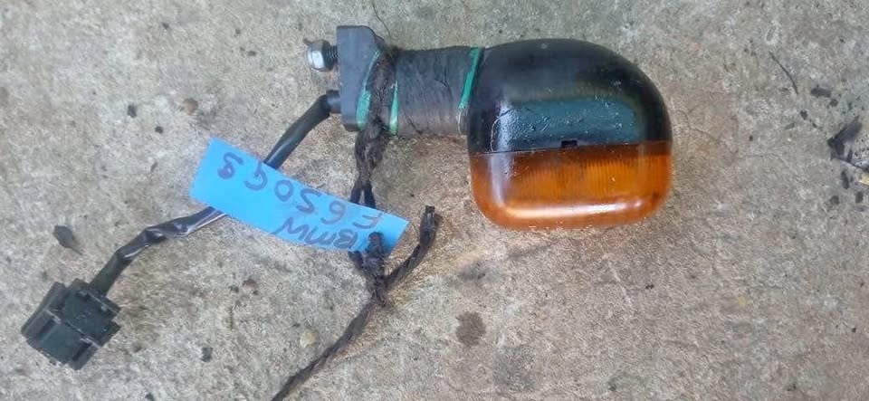BMW F 650 indicator. Stripping complete bike. Meyerton bike scrapyard new and secondhand spares and accessories. We stripping bikes , quads , scooter , off roads etc. We courier country wide. Address 26 Karney str c/o Jim Fouche str Nelsonia Meyerton. Call or whatsapp Andre or landline