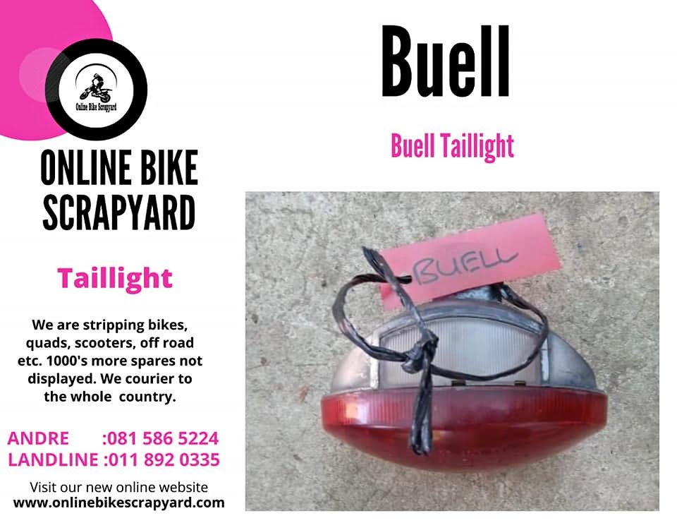 Buell taillight. Online bike Scrapyard new and secondhand spares and accessories and workshop. We stripping bikes, quads, scooters, off roads etc. We courier country wide. Address 26 Karney str c/o Jim Fouche str Nelsonia Meyerton Andre call or WhatsApp Andre