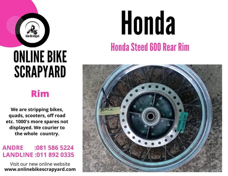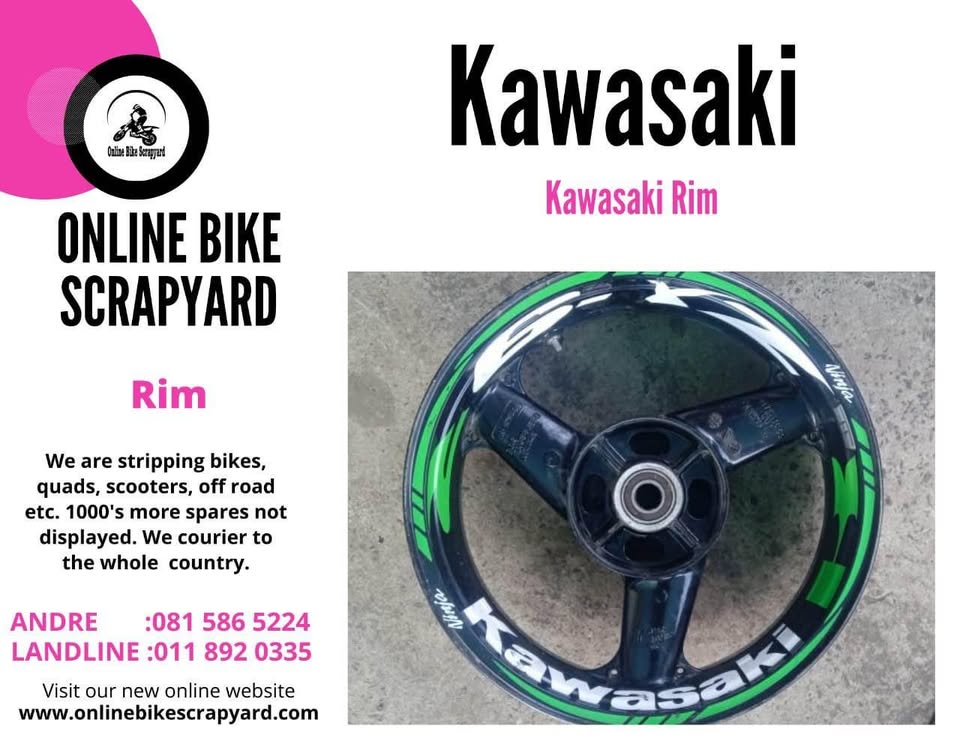 Kawasaki ZX 9 rim. Meyerton Bike Scrapyard new and secondhand spares and accessories. We stripping bikes, quads, scooters, off roads etc. We courier country wide. Address 26 Karney str c/o Jim Fouche str Nelosonia Meyerton. Call or WhatsApp Andre