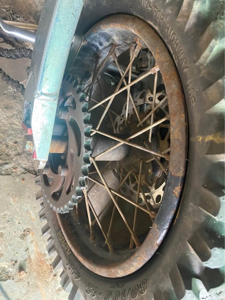 Pibike 12” rear rim. Meyerton bike scrapyard new and secondhand spares and accessories. We stripping bikes , quads , scooter , off roads etc. We courier country wide. Address 26 Karney str c/o Jim Fouche str Nelsonia Meyerton. Call or whatsapp Andre or landline