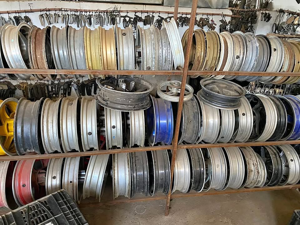 Scooter rims. Meyerton bike Scrapyard new and secondhand spares and accessories and workshop. We stripping bikes, quads, scooters, off roads etc. We courier country wide. Address 26 Karney str c/o Jim Fouche str Nelsonia Meyerton. Call or WhatsApp Andre or Landline