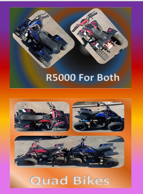 2 mini quads, 1 running, the other needs tlc, view and collect in Deneysville, R5000.00 for both, not neg, not selling seperately. WhatsApp 064-261-9623view more