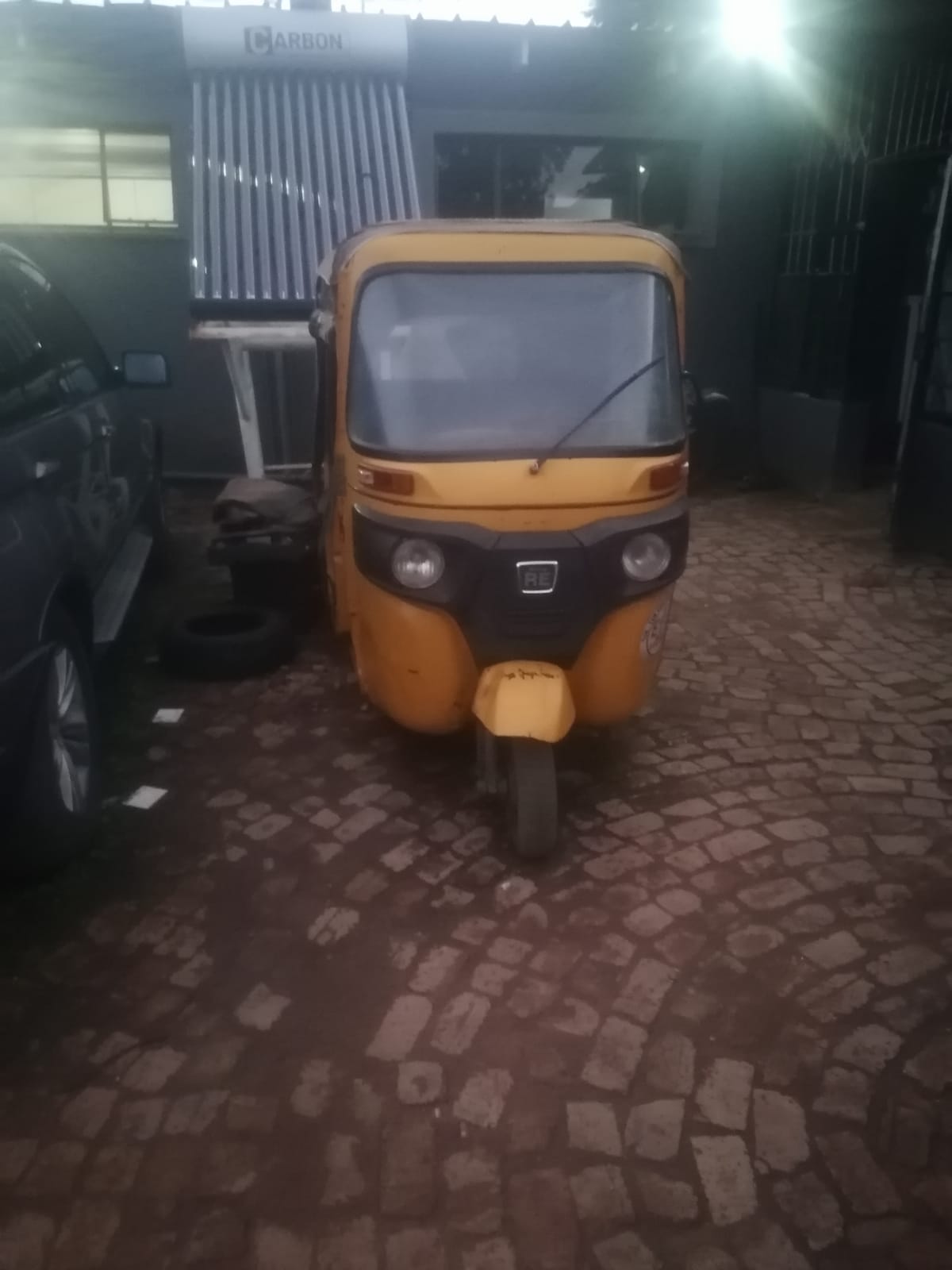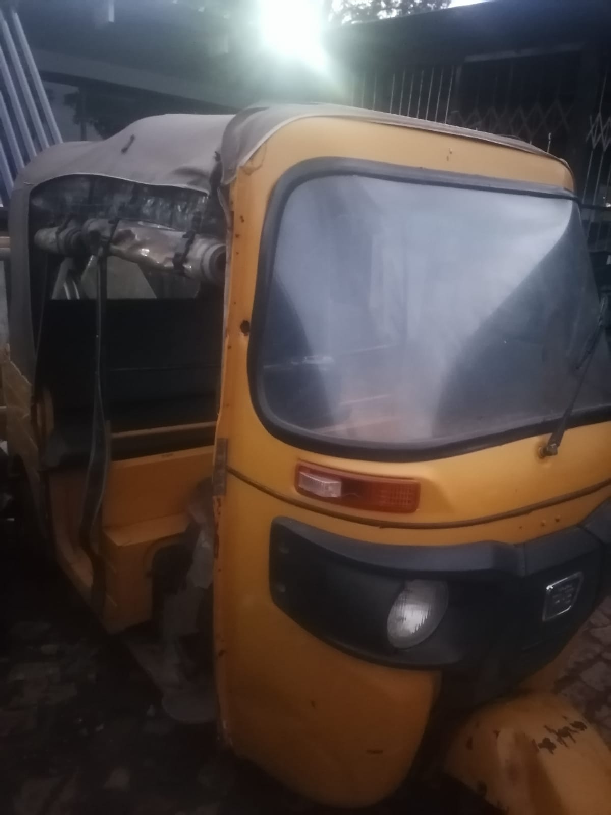 tuk tuk in good driving condition. It drives without the starter, but the starter needs replacing and the flaps need fixing.