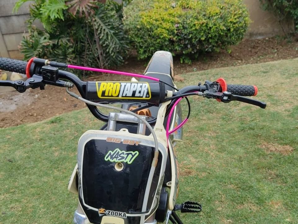 Big wheel Bigboy zooka crf 125 * New Grips. * New wheel straws. * All Brakes working 100%. * New Airfilter. * Seat is still in good condition ( No Tears ). Bike is 2Nd Hand but still in Good condition ( as per pics ) 📌 Situated in Springs East Rand Gauteng 📌 📱 whatsapp on 0⃣8⃣3⃣ 3⃣0⃣6⃣ 1⃣0⃣2⃣3⃣ For more info ‼️Please note this is a offroad bike‼️