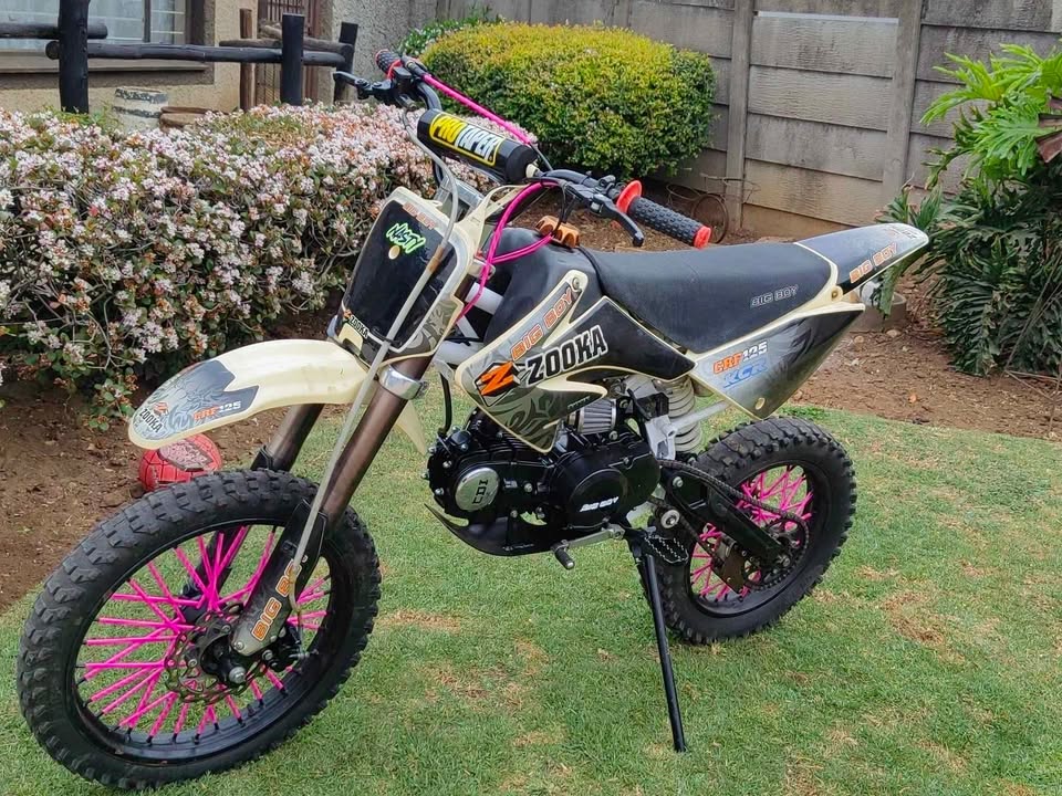 Big wheel Bigboy zooka crf 125 * New Grips. * New wheel straws. * All Brakes working 100%. * New Airfilter. * Seat is still in good condition ( No Tears ). 📌 Situated in Springs East Rand Gauteng 📌 📱 whatsapp on 0⃣8⃣3⃣ 3⃣0⃣6⃣ 1⃣0⃣2⃣3⃣ For more info ‼️Please note this is a offroad bike‼️
