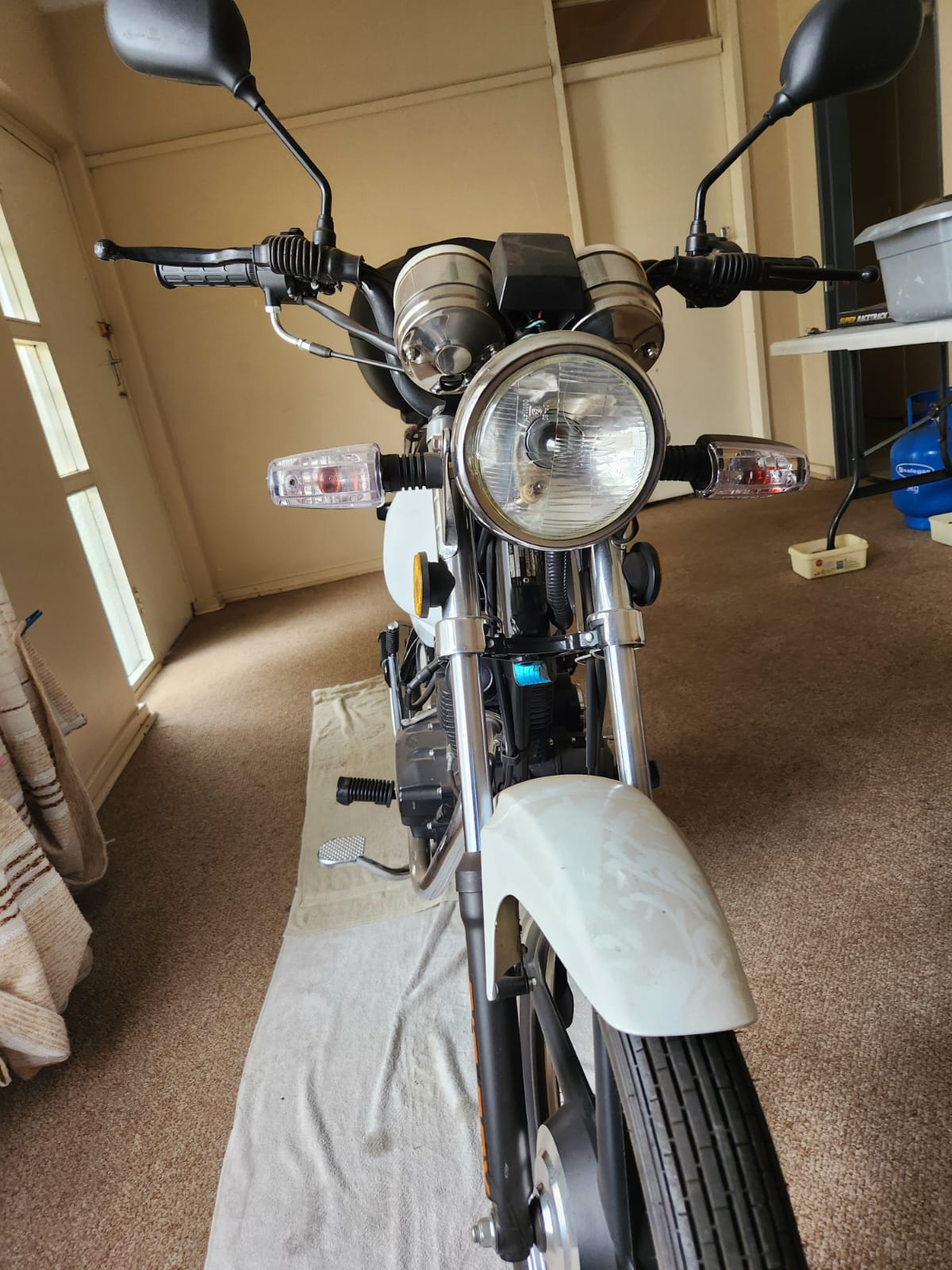 2022 Big Boy Velocity 150cc with only one owner. This bike has been lightly used, mainly for short trips to Checkers and back. The odometer reads just 2314 km, so it's still in excellent condition. Comes with a loading box, perfect for carrying groceries or small items.