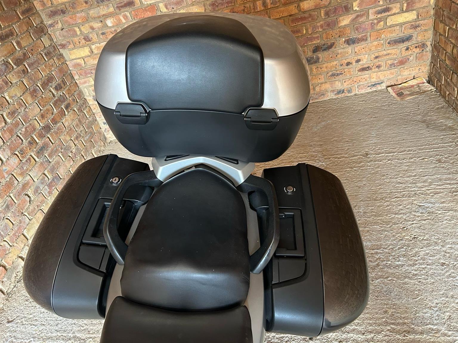 Removable top box and side panniers.