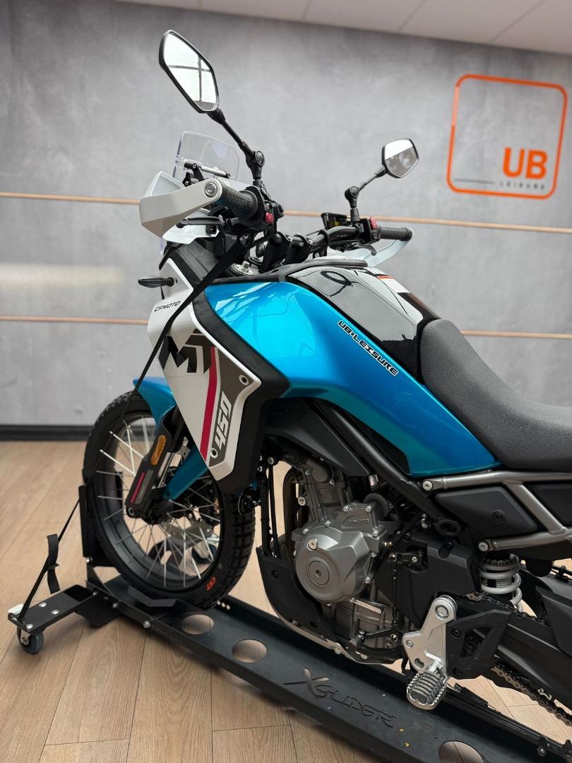 Discover the BRAND NEW 2025 CF Moto 450 MT- Zephyr Blue, for just R124 900. This bike have a 2 cylinder,4-stroke engine, liquid cooled, 6 speed transmission, Wet-DDS multi-plate-CF-SC slipper clutch, front & rear disc brakes.