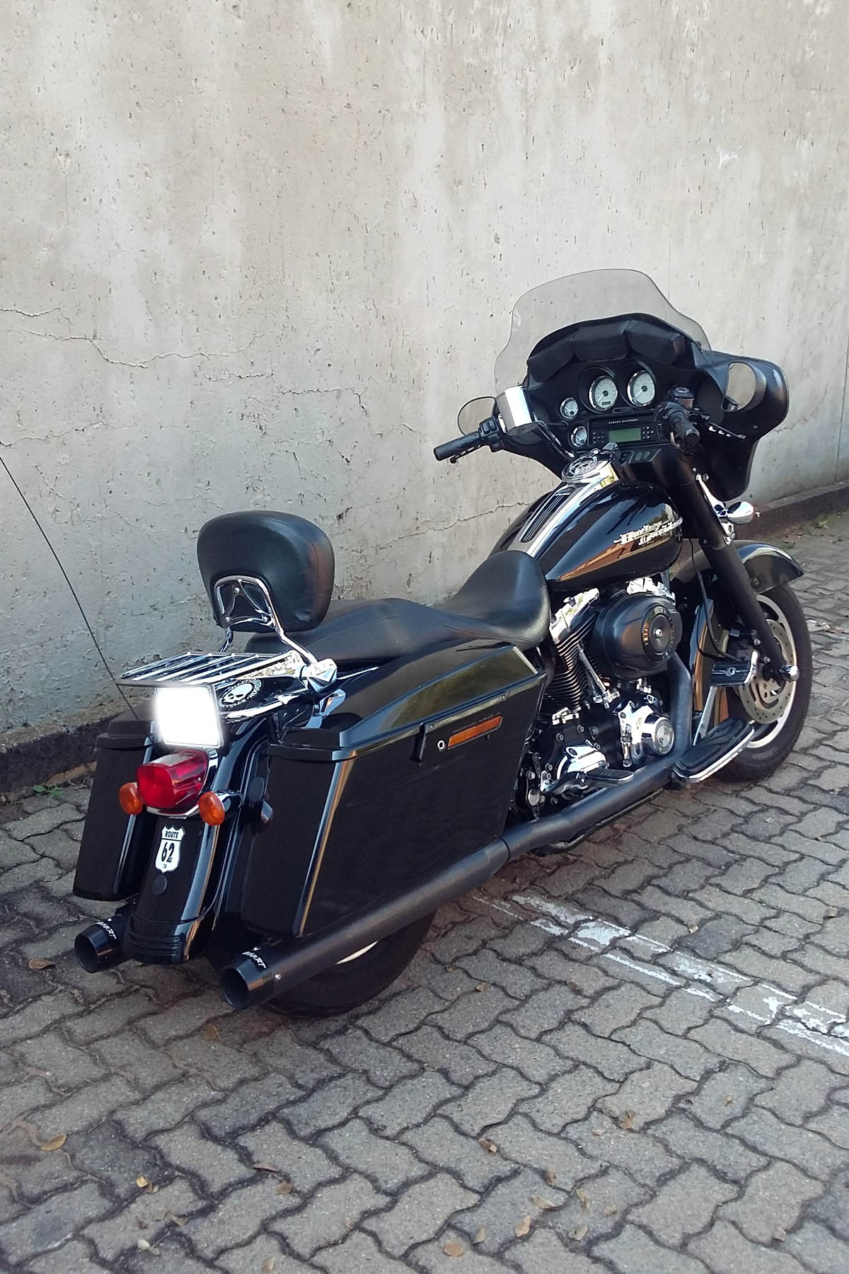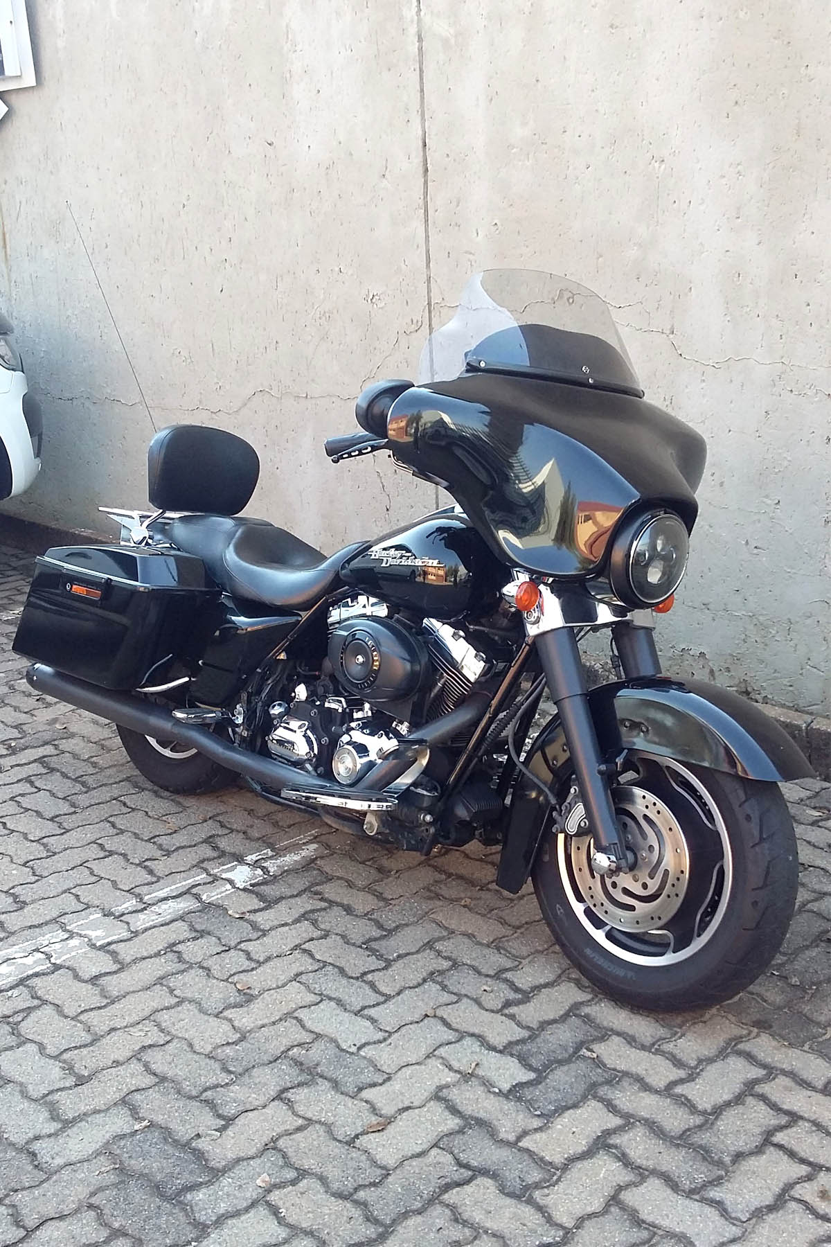 Street Glide 2007 Model with 68554Km on the Clock and 1584cc Engine! The Bike is Fitted with the Following Extras: LED Headlight, Chrome Axle Covers, Windshield Pouch, Cup Holder, Detachable Sissy Bar with Rack, Rinehart Exhaust.