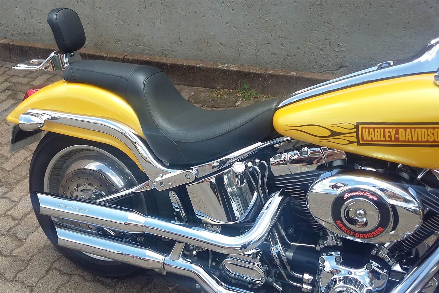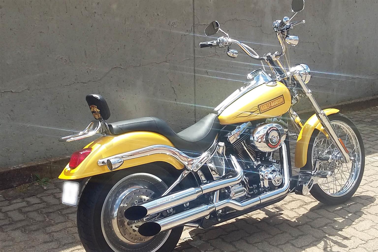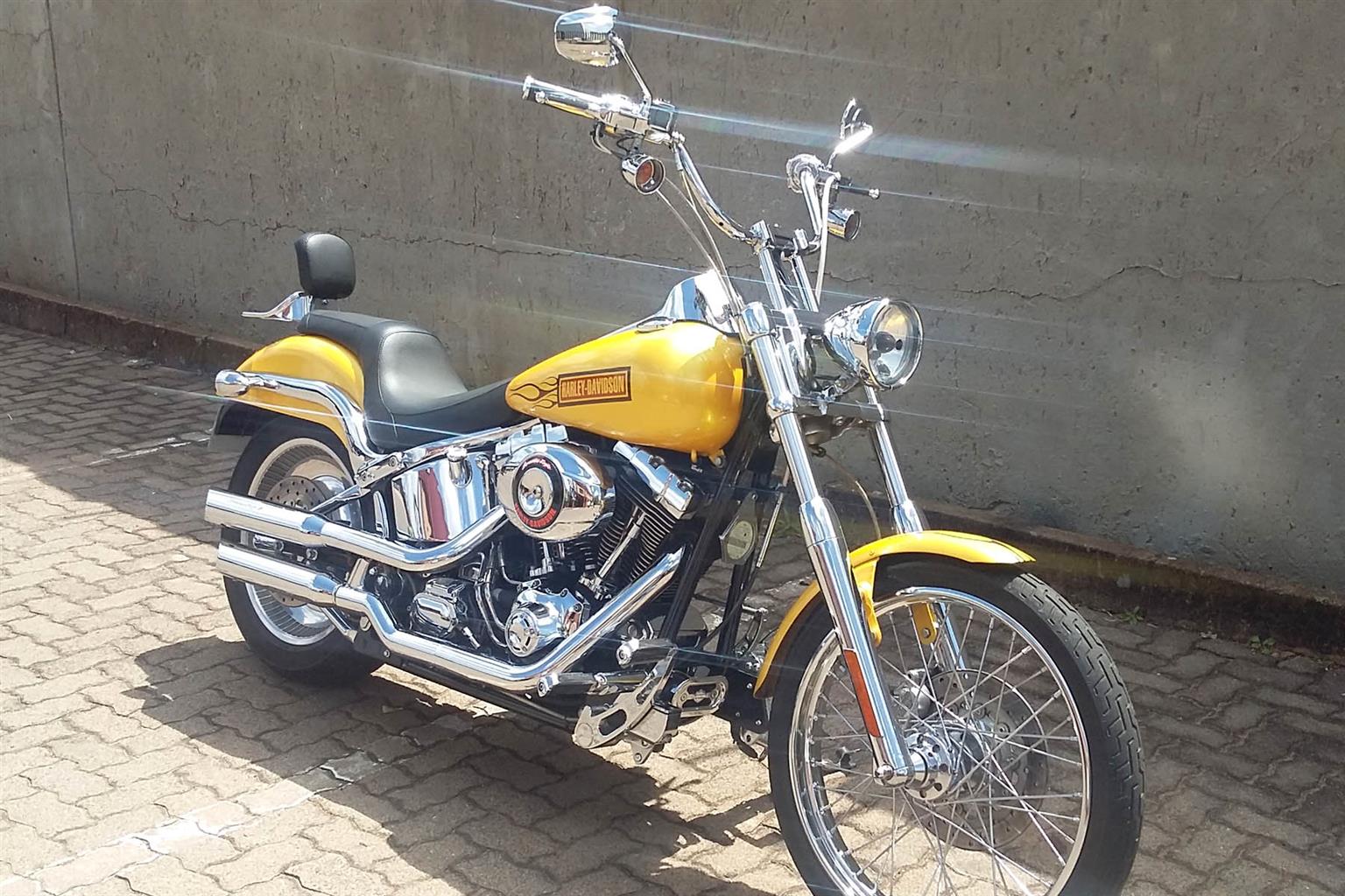 Softail Deuce 2002 Model with 41473km on the Clock and 1442cc Engine! Absolute Stunning Deuce, Smothered in Chrome! Fitted with the Following Extras: Custom Paint Job & Seat, Mini Sissy Bar with Rack, Matching HD Flame Grips & Pegs, Screaming Eagle Mufflers, Digital Oil Gauge, Billet Forward Controls. Chrome Extras: Switch Gears & Covers, Regulator Cover, Oil Filter Cover, Swing Arm & Swing Arm Cover, Axle Covers, Banana Inserts, Drive Pulley, Bolt Covers, Front Caliper, Top & Bottom Drive Belt Guards. Tyres will be replaced upon Sale! This Bike is Set Up for a Tall Rider. R115 000.00