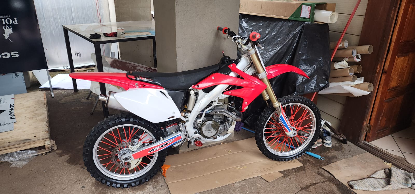 Bike is only standing as I'm working overseas. Project rebuild, redone the the bike from front to back, new plastics, motor overhauld and serviced, new grips, pegs, shifter, levers, stickers etc.