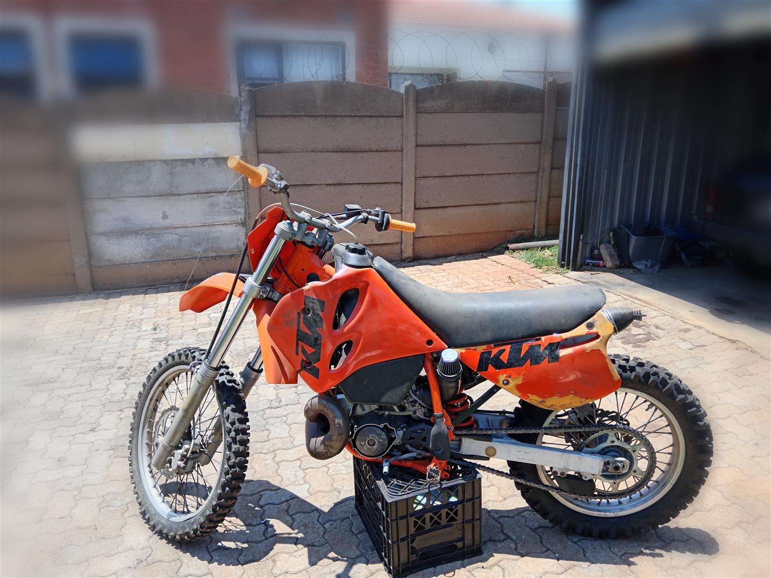 The bike starts very easy, the clutch basket needs to be cleaned as the oil has been in sitting for a few years. It is a 2stroke and it has got a fat pipe.it also Comes with a spare used ohlinds shock