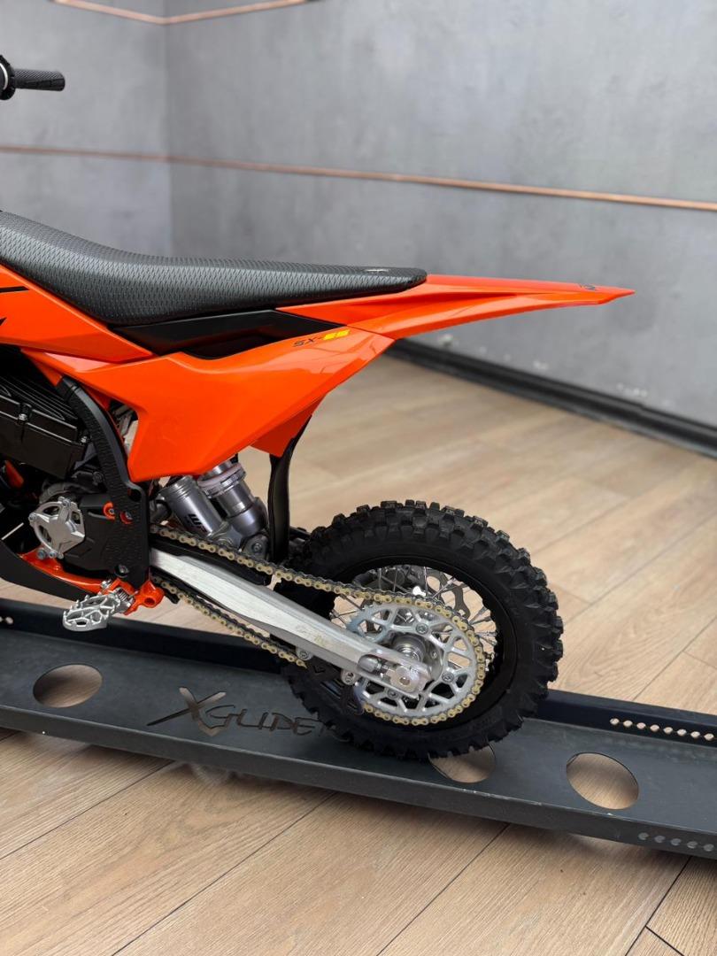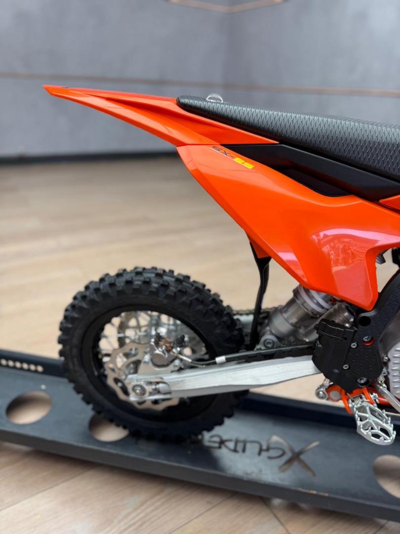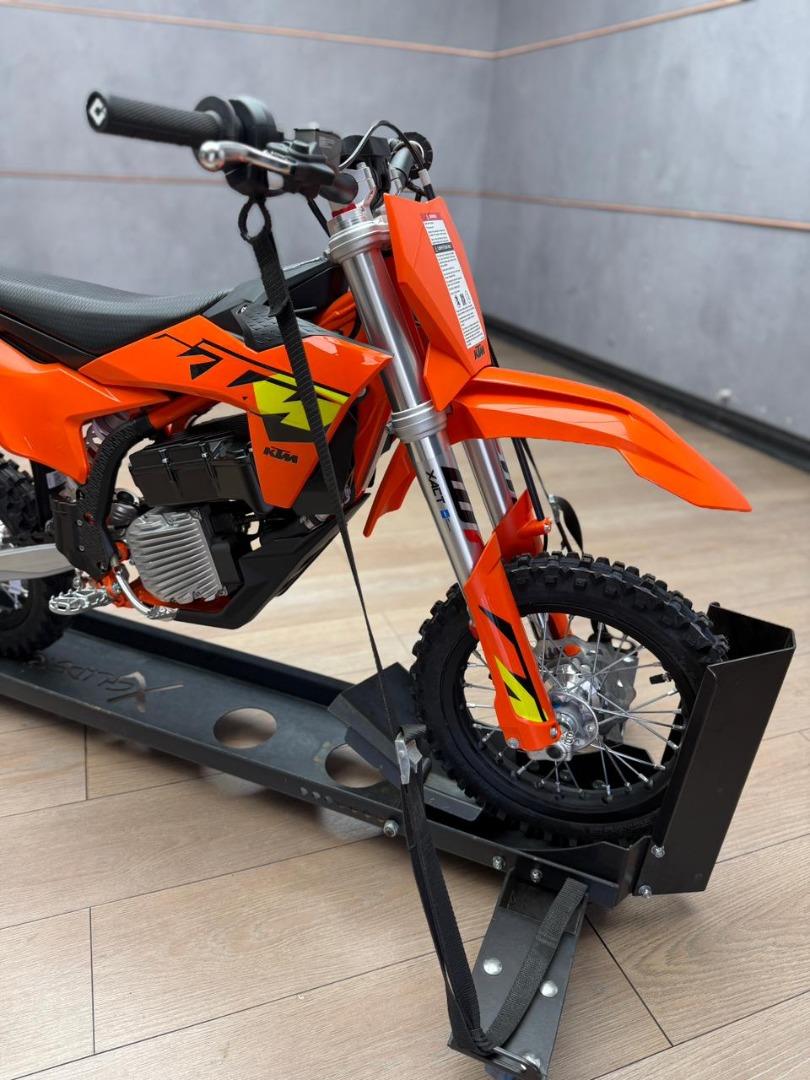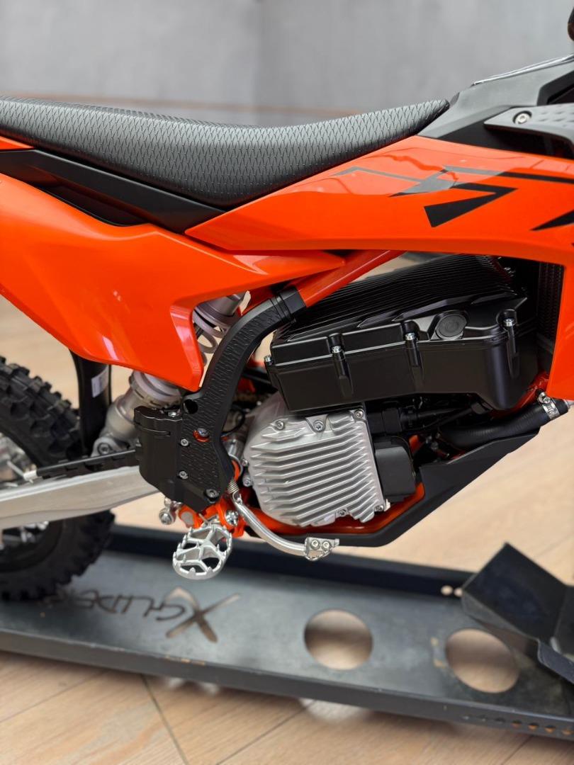 The BRAND NEW 2026 KTM SX-E5 is here! This bike is an advanced electric mini-cross bike designed for young riders transitioning from beginner to competitive levels. It features a fully electric, water-cooled permanent magnet motor delivering a peak power of 5.0 kW, offering 30% more riding time compared to its predecessor. The bike is equipped with a 907 Wh lithium-ion battery, providing over two hours of riding for beginners and approximately 30 minutes at full throttle for experienced riders.