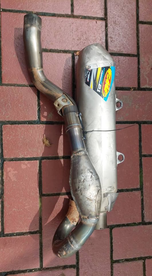 FMF full system for 4 stroke 2.1 Titanium Silencer and header . Fits 2014 -2016 KTM or Husqvarna 250 mx or Enduro 350 mx or Enduro Please call Gary at Dirtbike Fanatics on zero eight three 459 50-50
