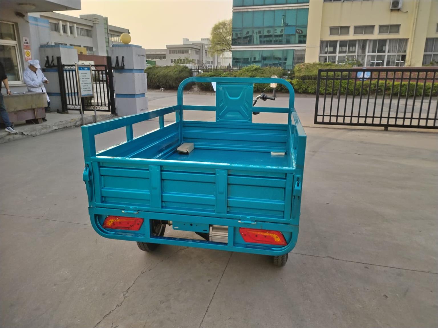 The electrically operated tricycle is a three-wheeled transport vehicle for carrying