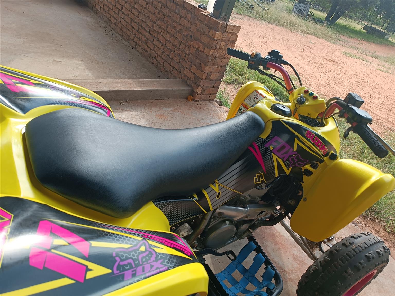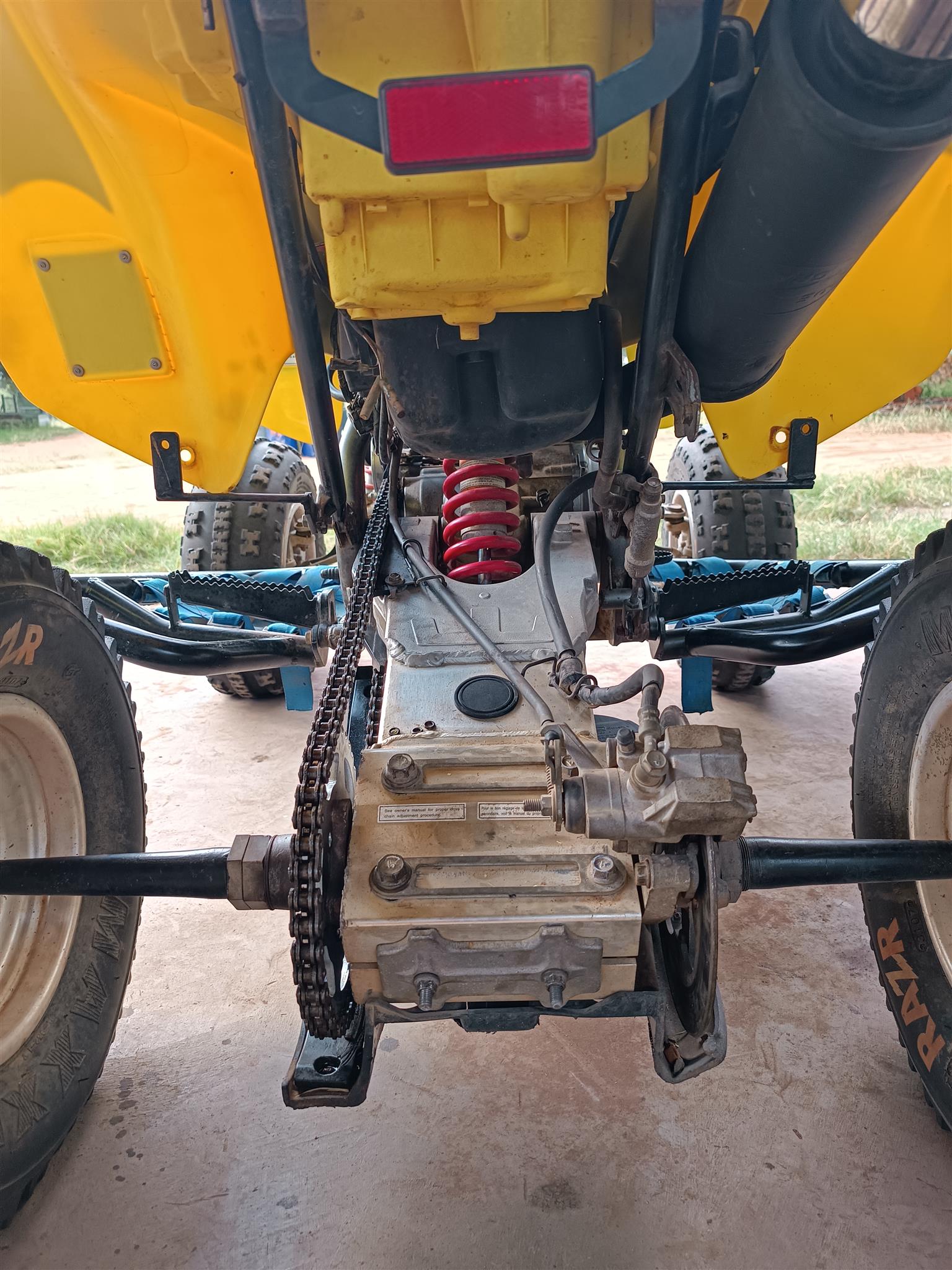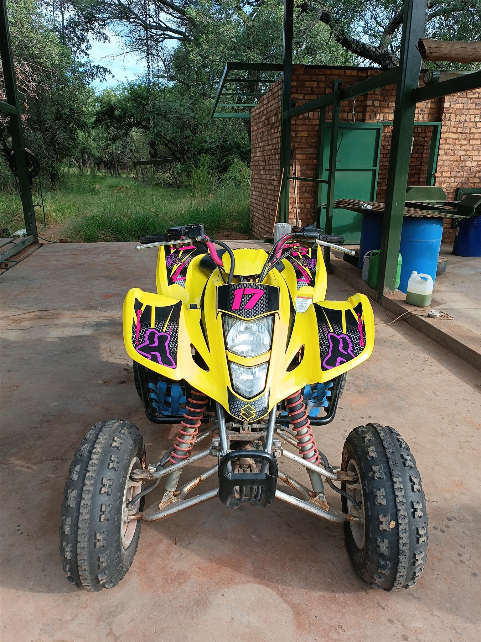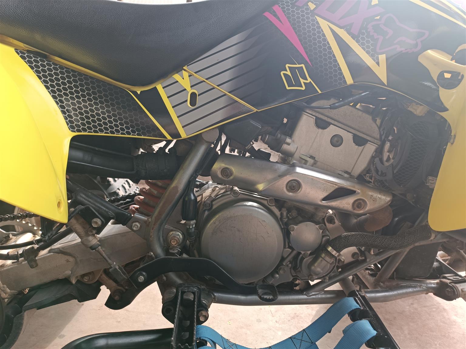 Has stickers, is yellow, new chain and sprocket