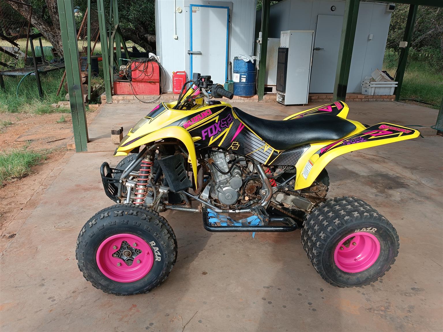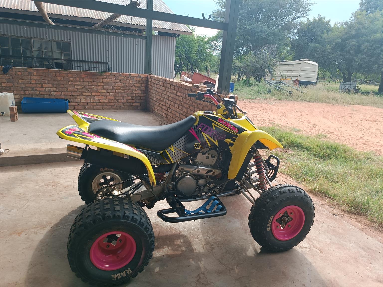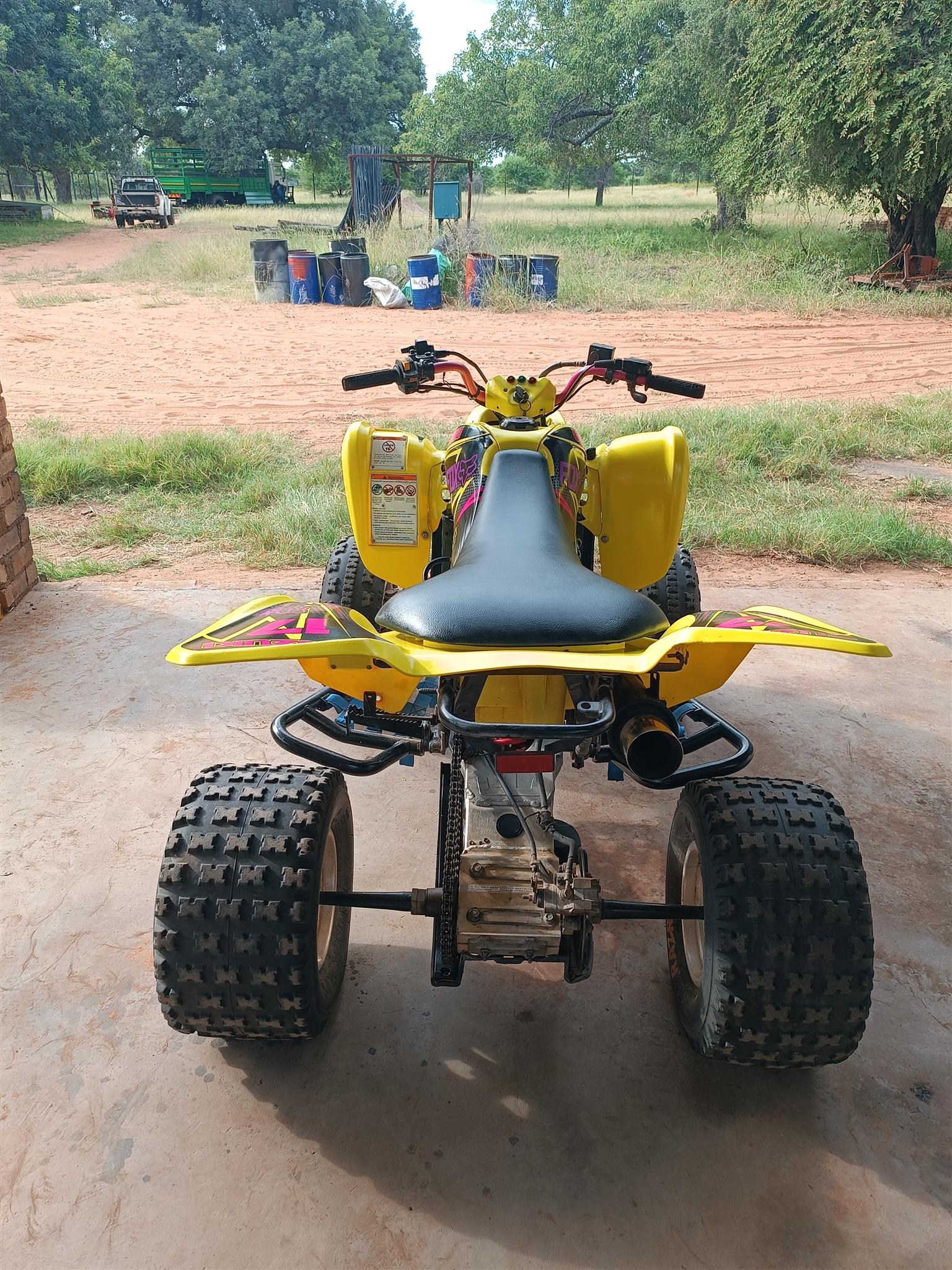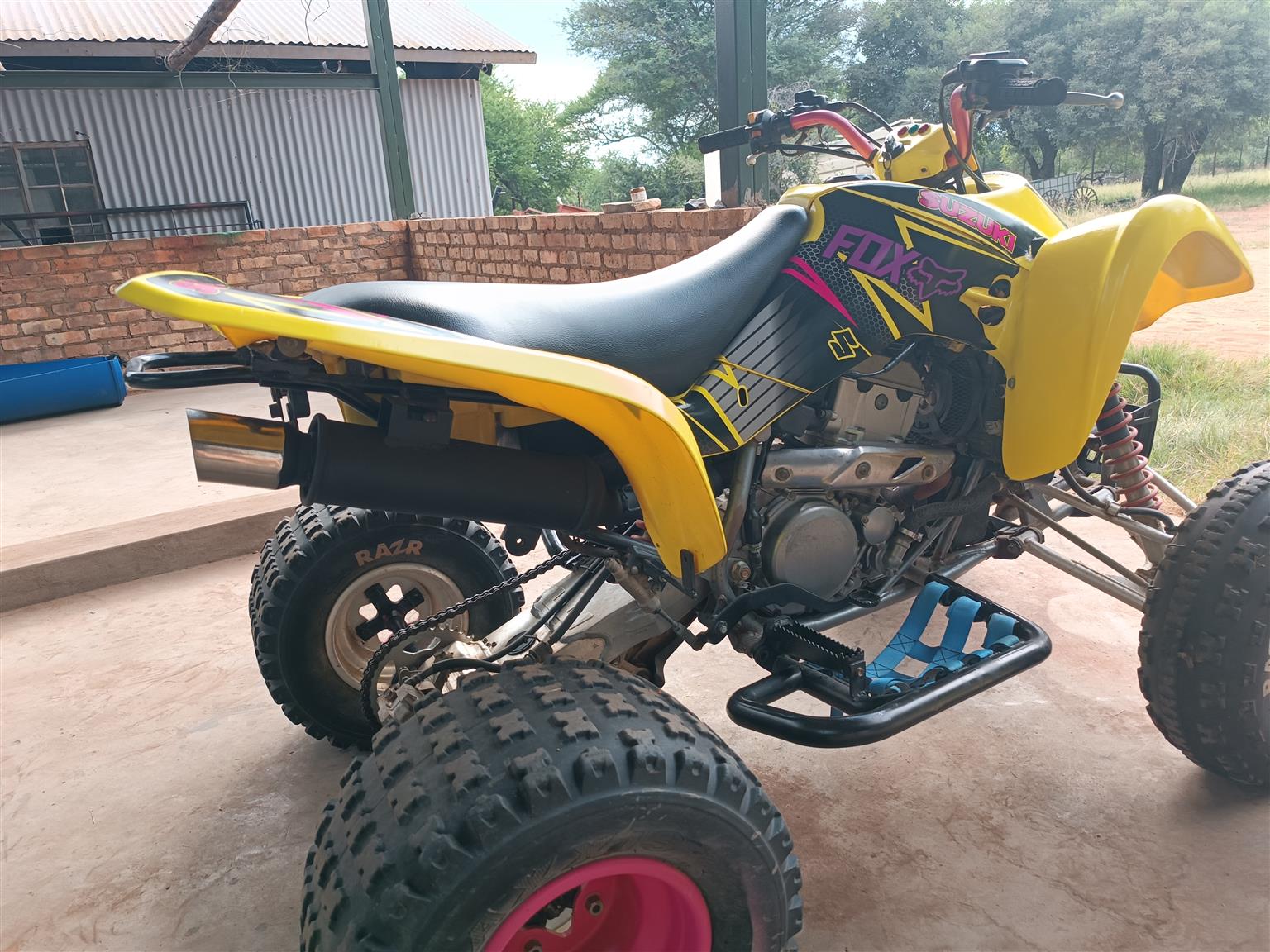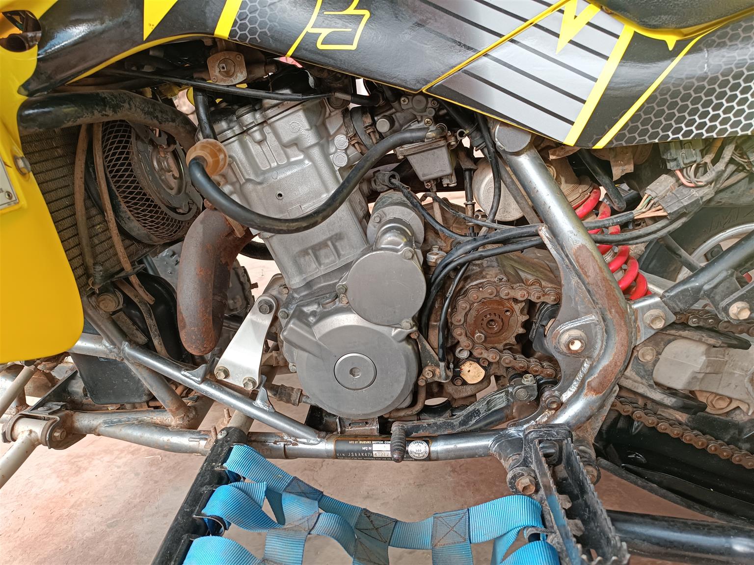 Has stickers, is yellow, new chain and sprocket