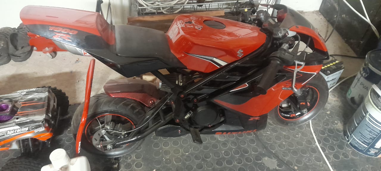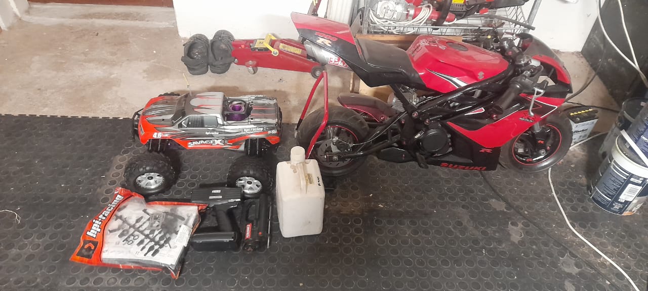 Suzuki GSX-R1000 replica pocket bike with tire stand & Savage X RC car with exstras