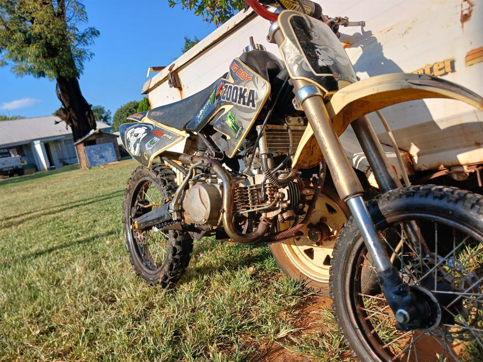 160cc Zooka pitbike for sale , Bike starts and runs , just needs new tube for back tyre . Bike is great to learn with before making the big step to buy a 2stroke or bigger bike .