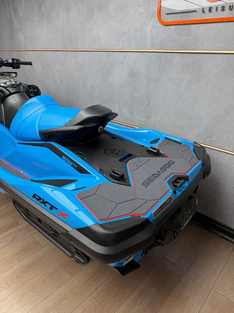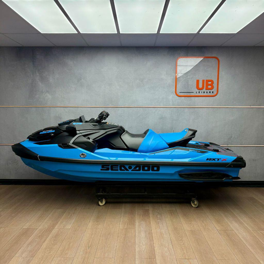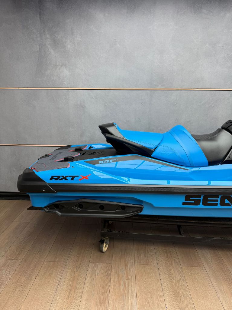 Discover the BRAND NEW 2026 Seadoo RXT X 325 with Sound System - Gulfstream Blue Premium, now available in store, for just R679 900. This jet ski has a Rotax 1630 ACE – 1,630 cc, supercharged with external intercooler engine, 325 Horsepower, Closed-Loop Cooling System with a 70 Litre Fuel Tank.