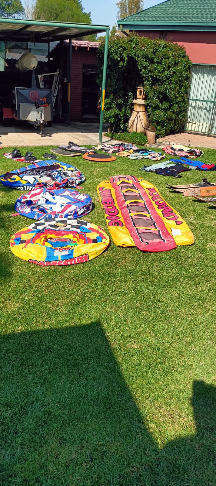 All with accessories like life jackets, ski's, tubes, wake snake, wake board, wake skate, knee board, disco board, bearfoot ski's