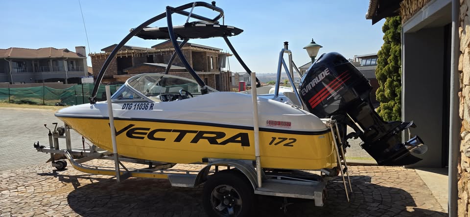 Vectra 172 Boat with 250hp One of the sexiest Boats on the Water and just in time for some serious summer fun!!! - Wake Tower + Bimini - New RipStop and Fleece Custom Cover - Galvanized Trailer - Rockford Bluetooth Sound - Just Been Serviced - 250hp Evinrude - 275hrs - Built in Buoyancy (American Boat) Selling Price @R239 000 All Paperwork is up to date Located at Bronkhorstspruit Dam Please Contact Lloyd