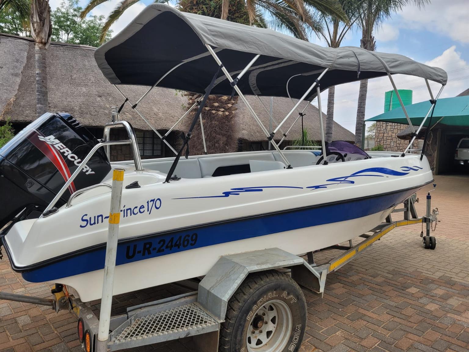 Rare find: Sunprince 170 Boat for sale with 2006 Mercury 125 engine. Boat is a wet deck with bulge pump and fishing deck specially built for fishing. The boat has a radio with waterproof speakers and fish finder in. The trailer is galvanized and very strong with big tires. The boat has a canopy that covers the whole boat and has a strong cover for the boat and engine. Length overall - 5.8M and Breath overall - 2.2M. The buoyancy is valid till 03/04/2028. The boat can easily carry 7-8 persons. Please note there are no tubes and skis included.
