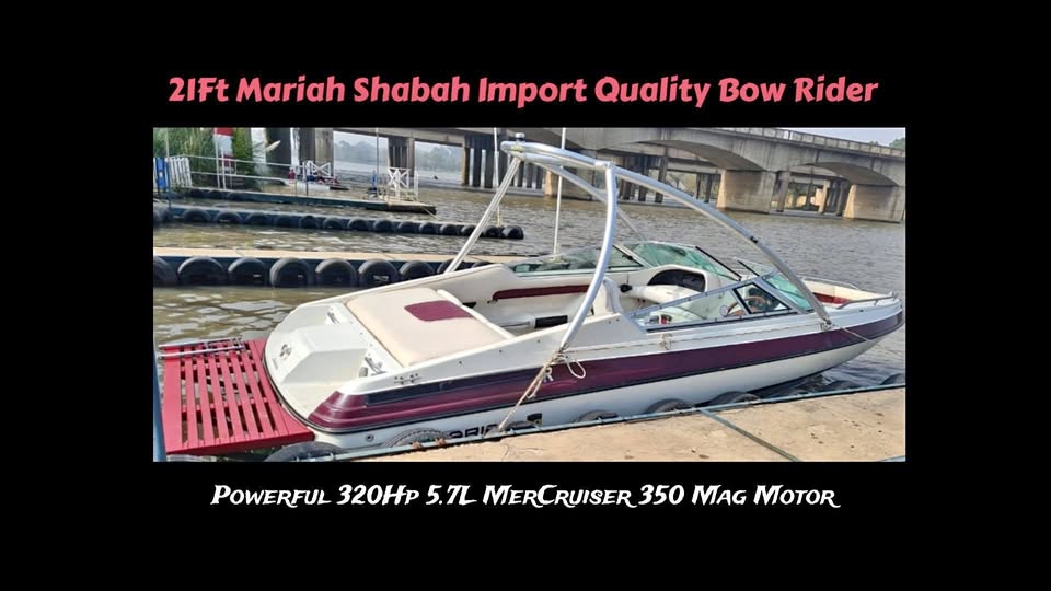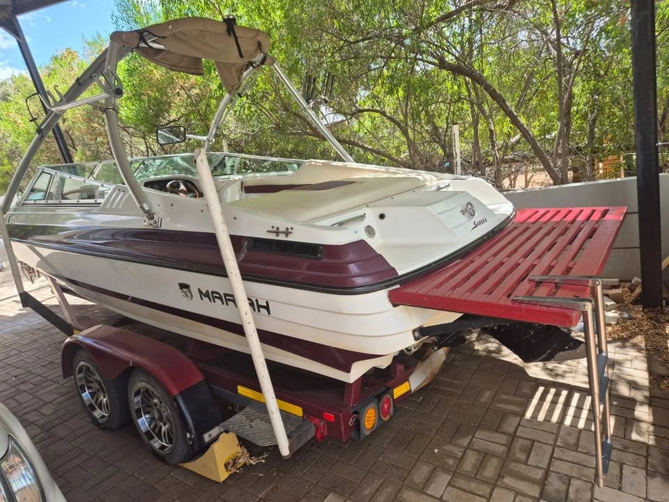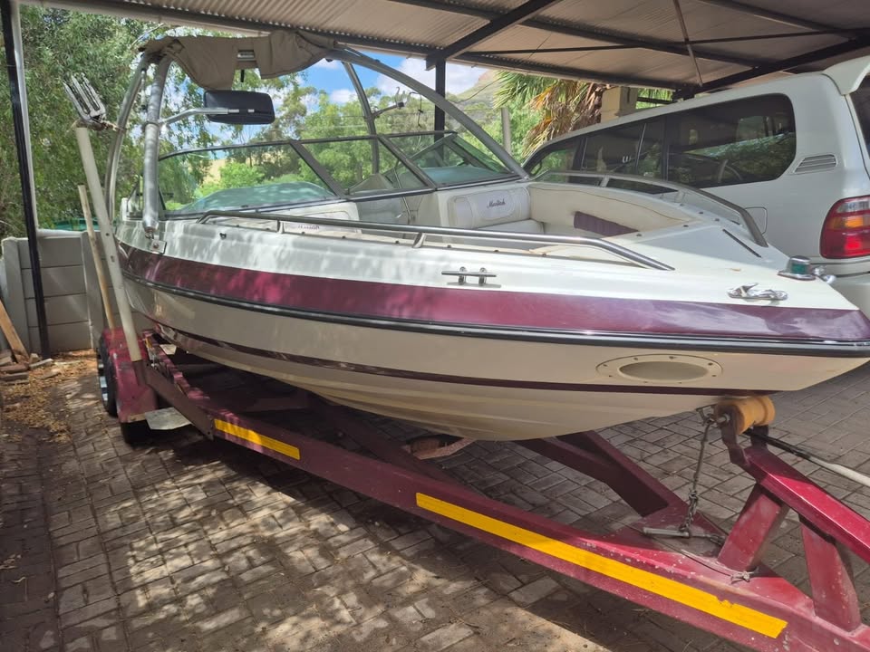 This great import quality, very comfortable 21Ft Mariah is a rare gem that offers everything you want from a great, stable luxury family/entertainment vessel. The 5.7L V8 (320Hp) 350 Magnum MerCruiser motor with Alpha One stern drive was newly rebuilt in early April 2022 and provides a powerful performance for whatever your heart desires; skiing, tubing, wakeboarding or just enjoying time out with friends or family. With a length of 6.4 m and a beam of 2.59 m, this beauty has ample space and seating for its rated 10 passengers. Private Sale. Price reduced by R 15 000.00 to sell soon. PLEASE NOTE: Toys/Accessories pictured are not included. Videos of boat's performance available upon request. Includes: * Monster wake tower with board racks, good quality bimini canopy and large rearview mirror * Sound system * Engine compartment lid doubles as tanning platform for those leisurely sunny days (Tanning platform and some seat upholstery needs attention/replacement) * Strategically placed glove boxes placed mid-ship on port and starboard side for passengers' belongings * Beautiful, large wooden swim platform with fold-away telescopic boarding ladder * Stainless steel grab rails all around * Docking- and navigation lights * Boat cover * Fuel tank capacity of 167 L, allowing for hours of uninterrupted fun in the sun * Original double axel trailer with mag wheels * All paperwork up-to-date and in order At this price you can afford to spoil yourself and the family with this beautiful top-class boat. Only ever used in fresh water. Contact Martin on 0Six2.427.3113. to book your appointment. Viewing by appointment only.