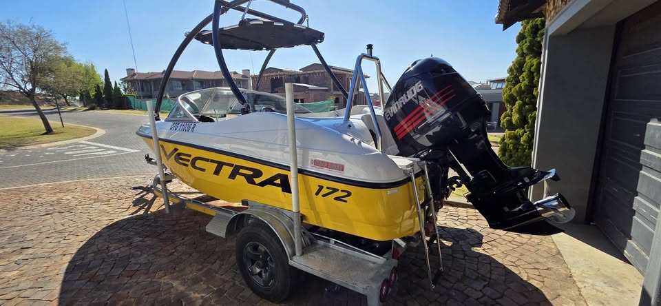 Vectra 172 Boat with 250hp One of the sexiest Boats on the Water and with superior build quality. These boats are just on another level! Luxurious and fully rigged for some serious wakeboarding, skiing and tubing!! More than enough power, big wake at low speeds, very spacious and very light on fuel... - Wake Tower + Bimini - New RipStop and Fleece Custom Cover - Galvanized Trailer - Rockford Bluetooth Sound - Just Been Serviced - 250hp Evinrude - 275hrs - Built in Buoyancy (American Boat) Selling Price @R239 000 All Paperwork is up to date Located at Bronkhorstspruit Dam Please Contact Lloyd