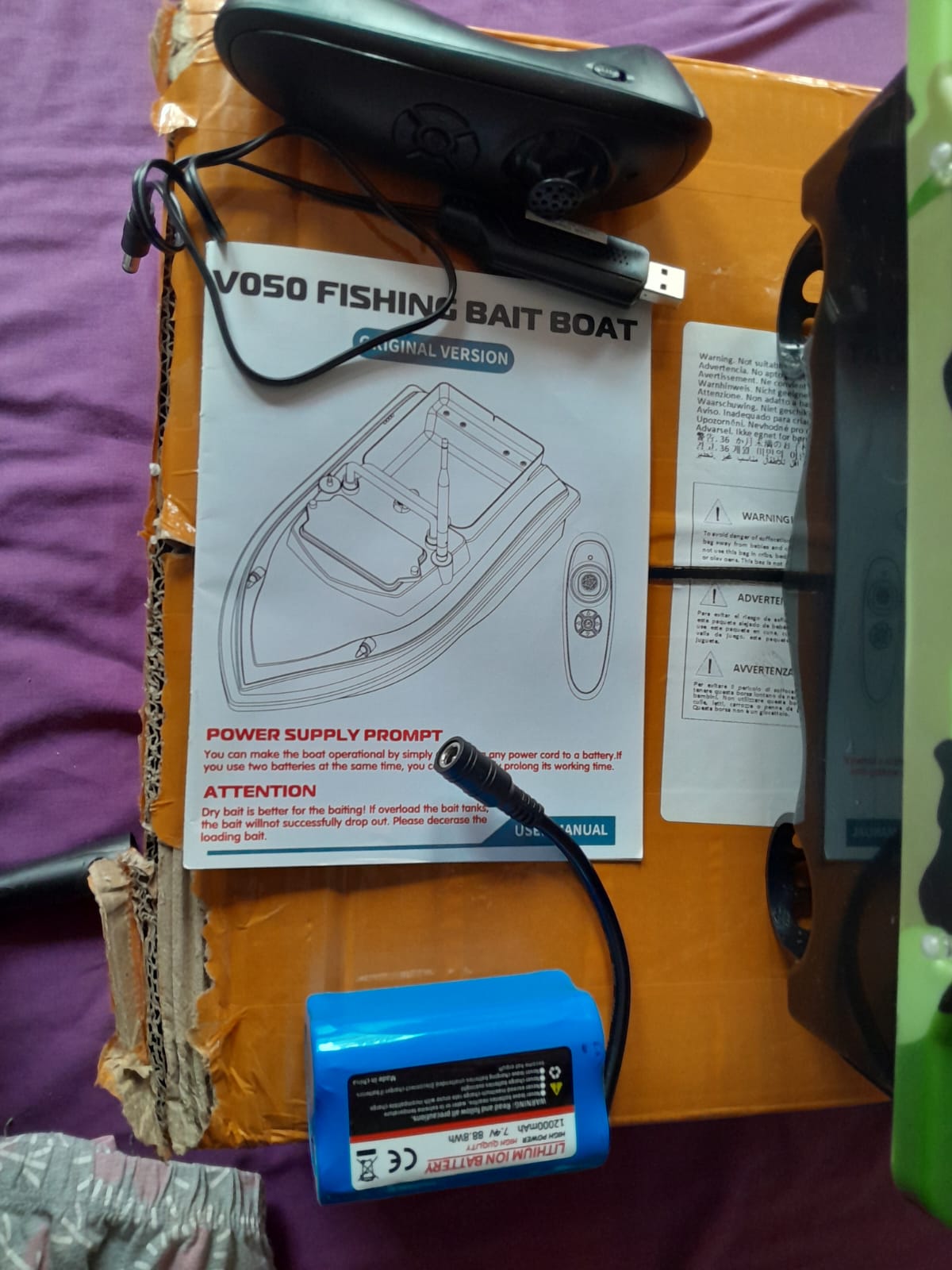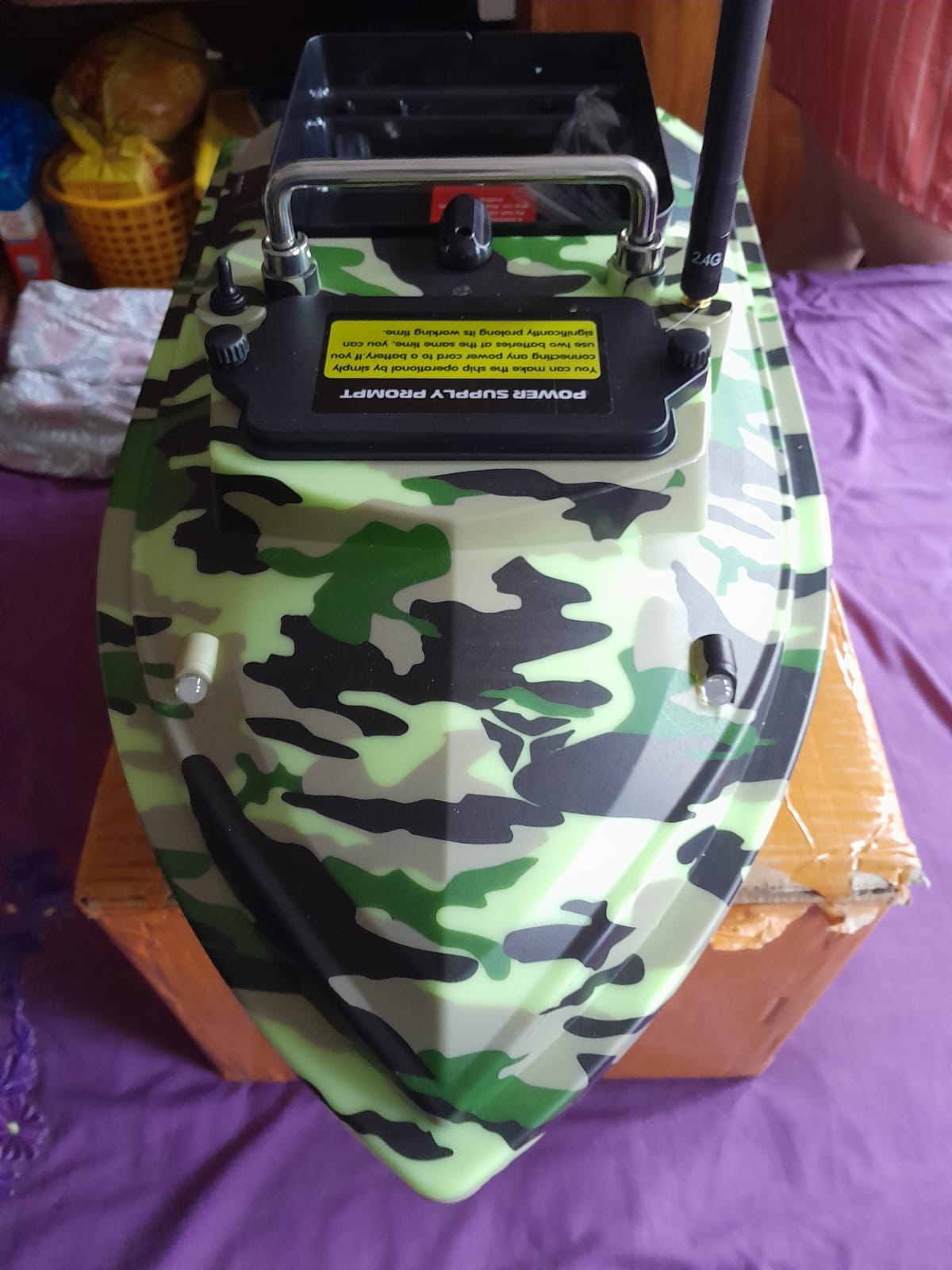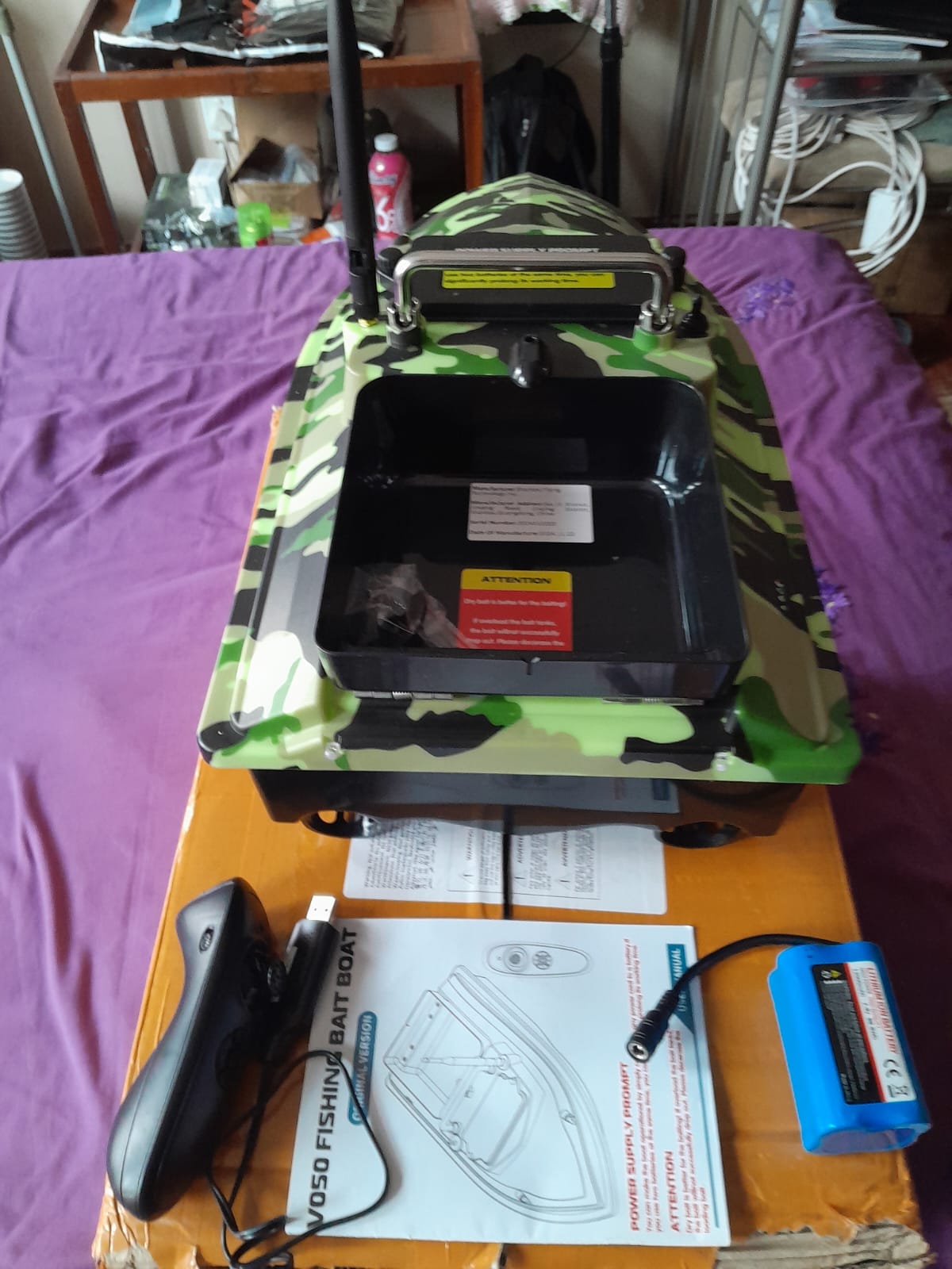 RC Bait boat, 500m max distance, twin motors, very powerfull, wind and wave friendly, light for night fishinf, single sili with 2,5 kb loading capacity, recharcable lithuim battery with usb charger. Item is brand new.