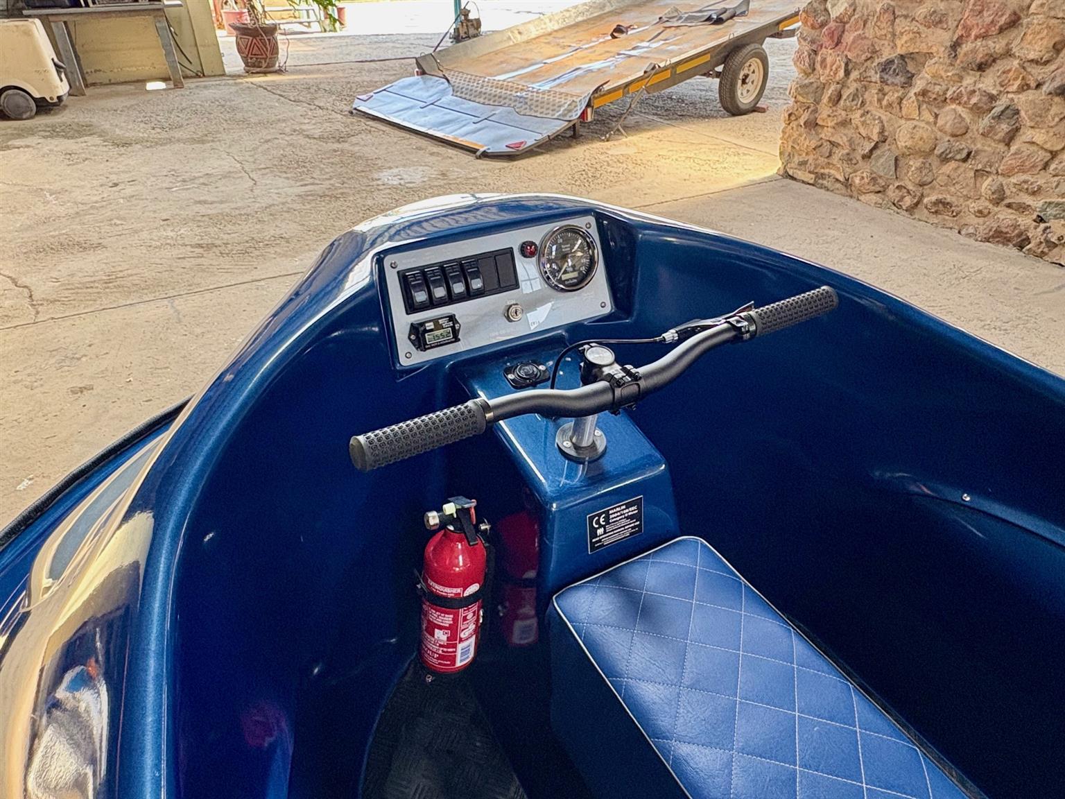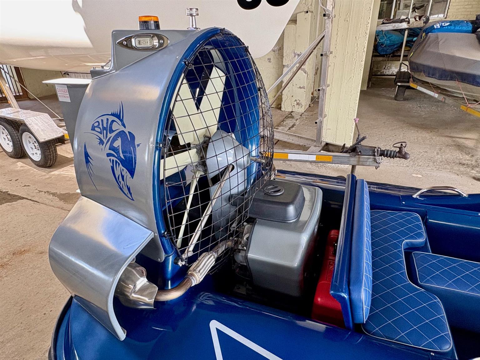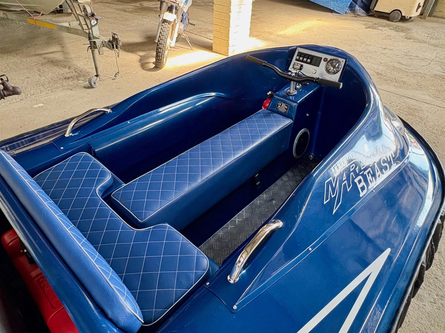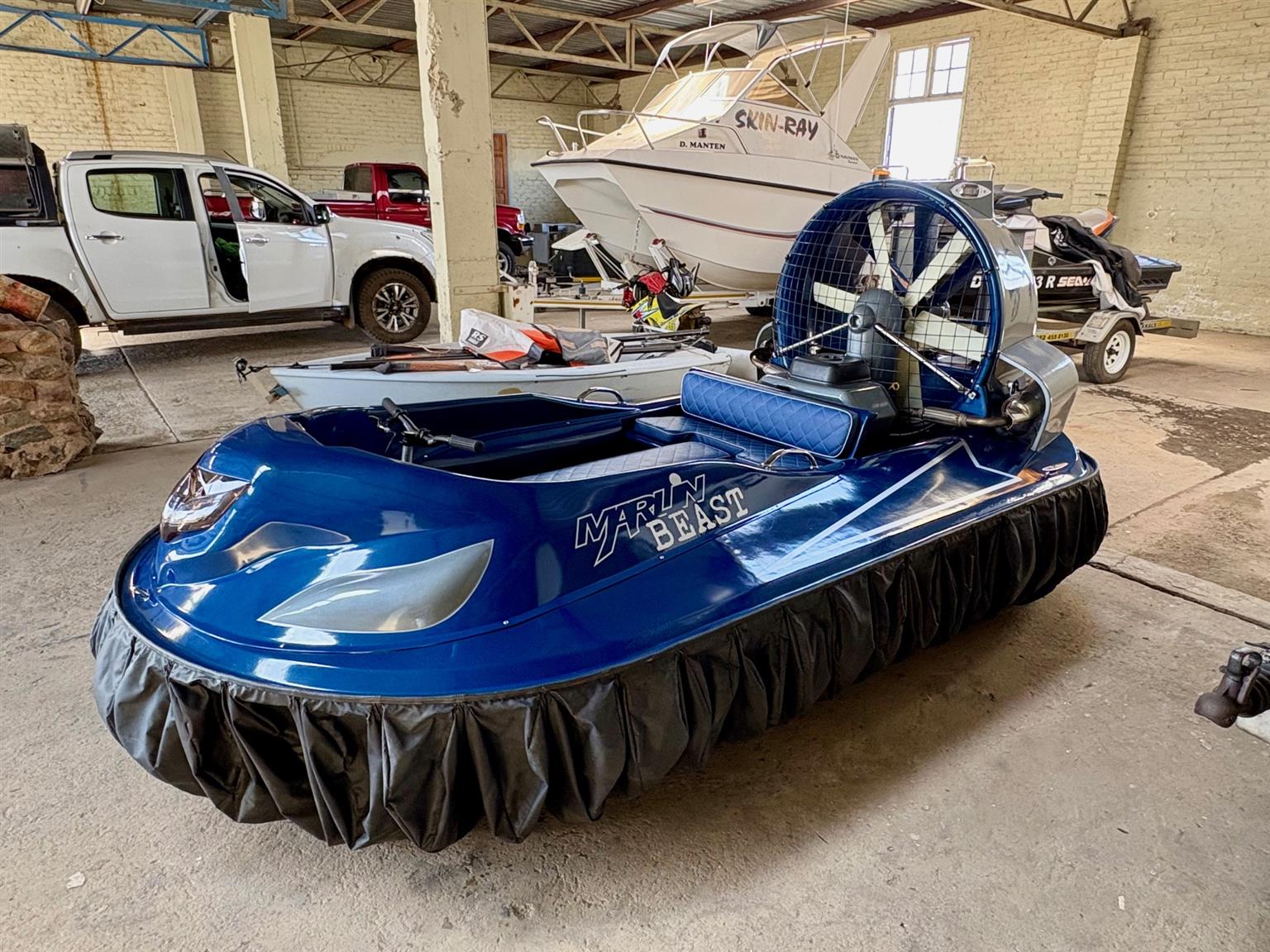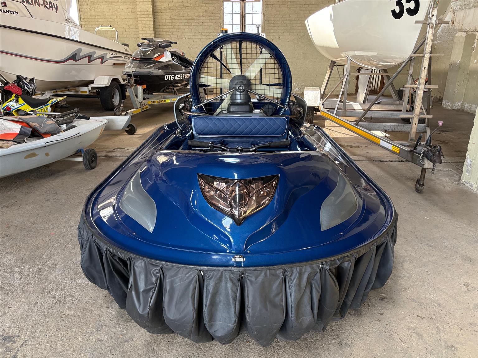 ‘The Beast’ is a stylish sports cruiser hovercraft, praised by Jeremy Clarkson as “the best fun you can have with an engine.” It features a speedometer, improved rudders, colored acrylic dashboard, nonslip flooring, lights, a headlight, and marine-quality fabric seating. Key specifications include: