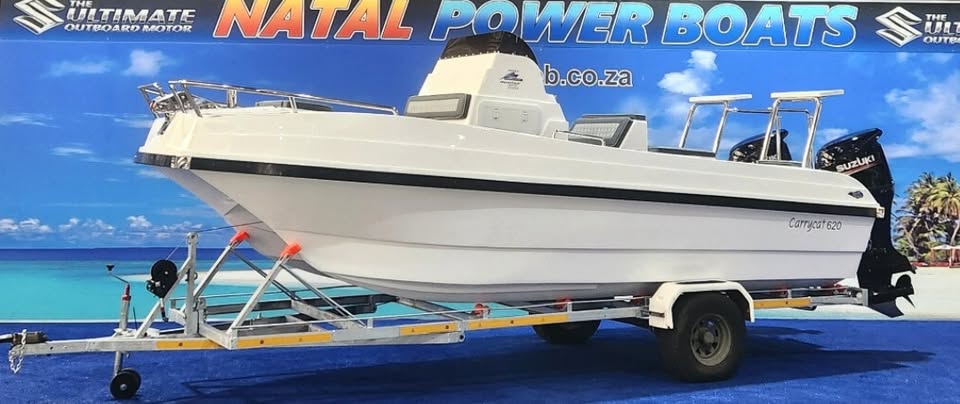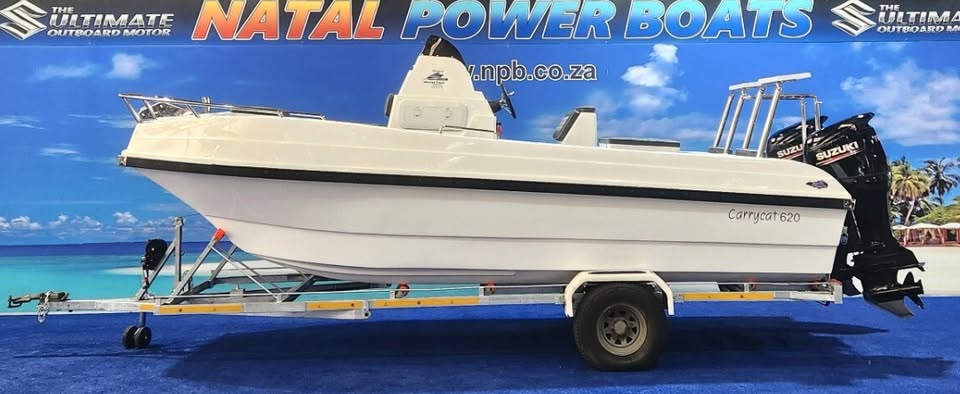 CARRY CAT 620 Centre Console Stainless keel strips to be fitted 2025 Model Preowned Galvanized trailer Breakneck Oil filled axle 15 Inch wheels Galvanized rims Spare wheel No Brakes on trailer 2 x 115 HP Suzuki 4 Strokes 2019 Models MFG gauges Stainless skeg protectors Beaching kits Fuel water separators Hydraulic steering Flotex carpet Live well Trawling bar with 4 rod holders Fish hatches Rear boarding ladder R899000.00 Options With 2 X Brand new 115 Suzuki 4 Strokes R With 2 x Brand new 140 Suzuki 4 Strokes Counter Rotations Stainless propellers R Finance is arranged through WesBank, Absa, and Standard Bank Trade-ins are welcome All boats and motors are in Pinetown Kwa Zulu Natal. Local and nationwide delivery is arranged 24/7 Anyway, Anytime Shipping is Arranged Worldwide with Zero Rating, and Exporters code. We park and sell on behalf. PRAVESH WHATS APP OR Messenger Email
